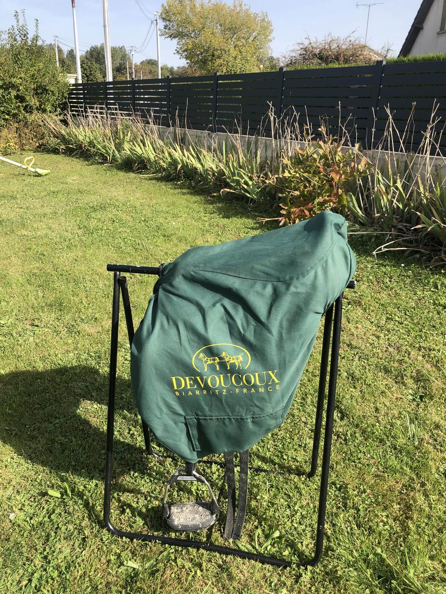 vendue avec étrivières devoucoux (125), housse devoucoux et sangle (40cm)