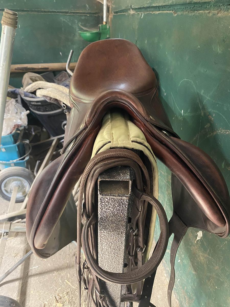 Selle monoquartier 16,5 pouces (mesures des quartiers sur les photos) petits défauts dus à son âge mais très bon état général ! Je l’ai depuis 2017 mais elle ne convient pas à mon nouveau cheval! Utilisée sur petit cheval et grands poneys. Visible sur Bonneville la Louvet (20min de deauville) jusqu’au 25 aout sinon 78. Négociable dans la mesure du raisonnable !