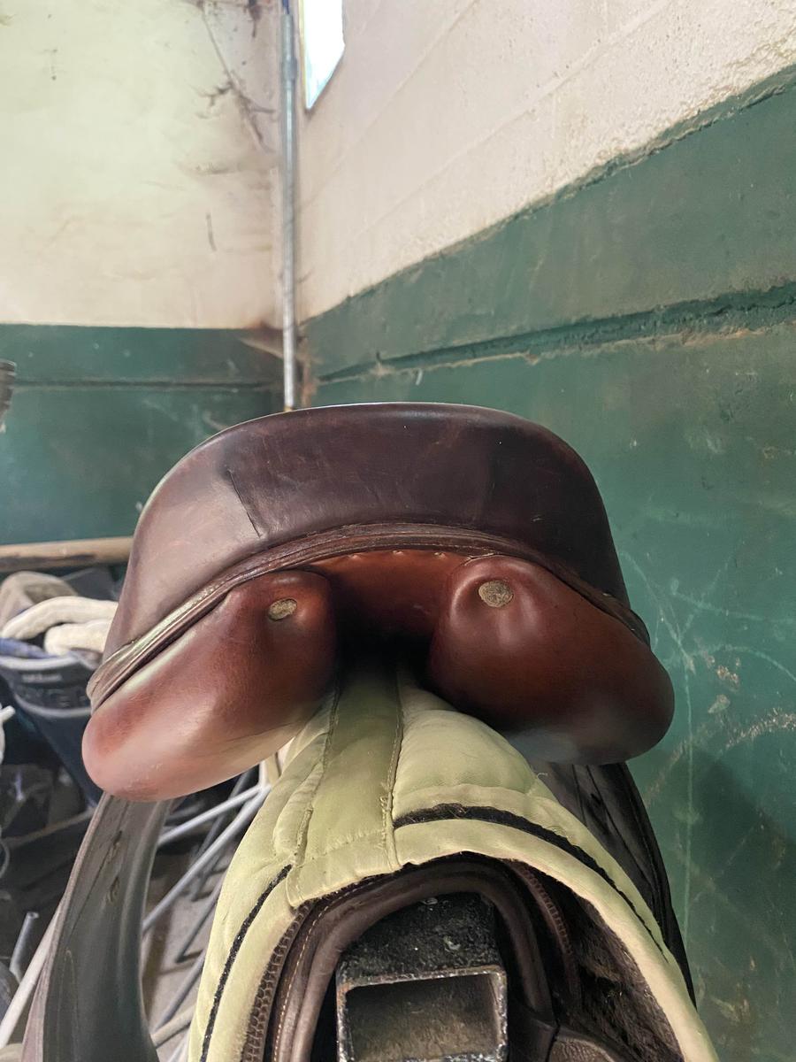 Selle monoquartier 16,5 pouces (mesures des quartiers sur les photos) petits défauts dus à son âge mais très bon état général ! Je l’ai depuis 2017 mais elle ne convient pas à mon nouveau cheval! Utilisée sur petit cheval et grands poneys. Visible sur Bonneville la Louvet (20min de deauville) jusqu’au 25 aout sinon 78. Négociable dans la mesure du raisonnable !
