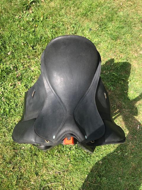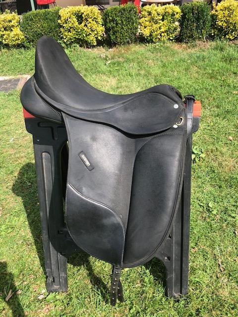 Selle de dressage Wintec 17" synthétique noire. Très bon état avec arcade d'arçon noire