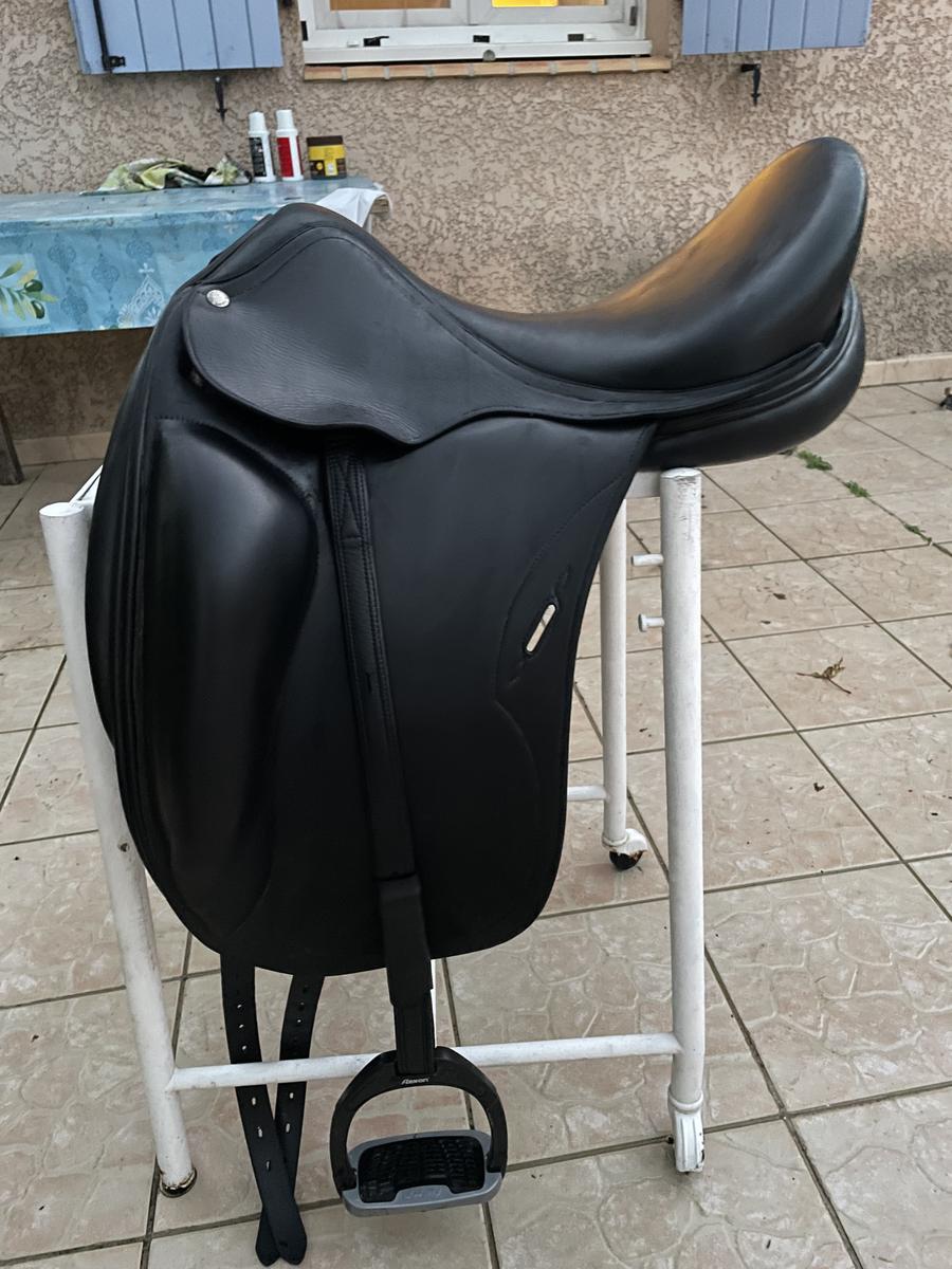 Selle de dressage Equipe, en très bon état. Elle a toujours été très bien entretenue.