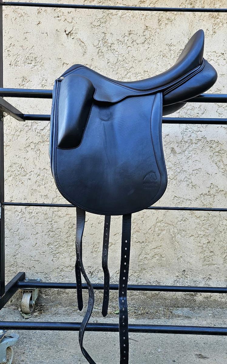Cause changement de cheval A VENDRE Selle AULION 2022 Taille 17,5 en parfait état avec housse et tapis neuf jamais servi.