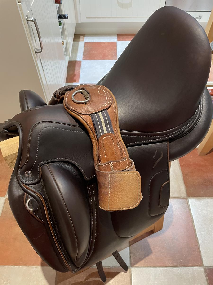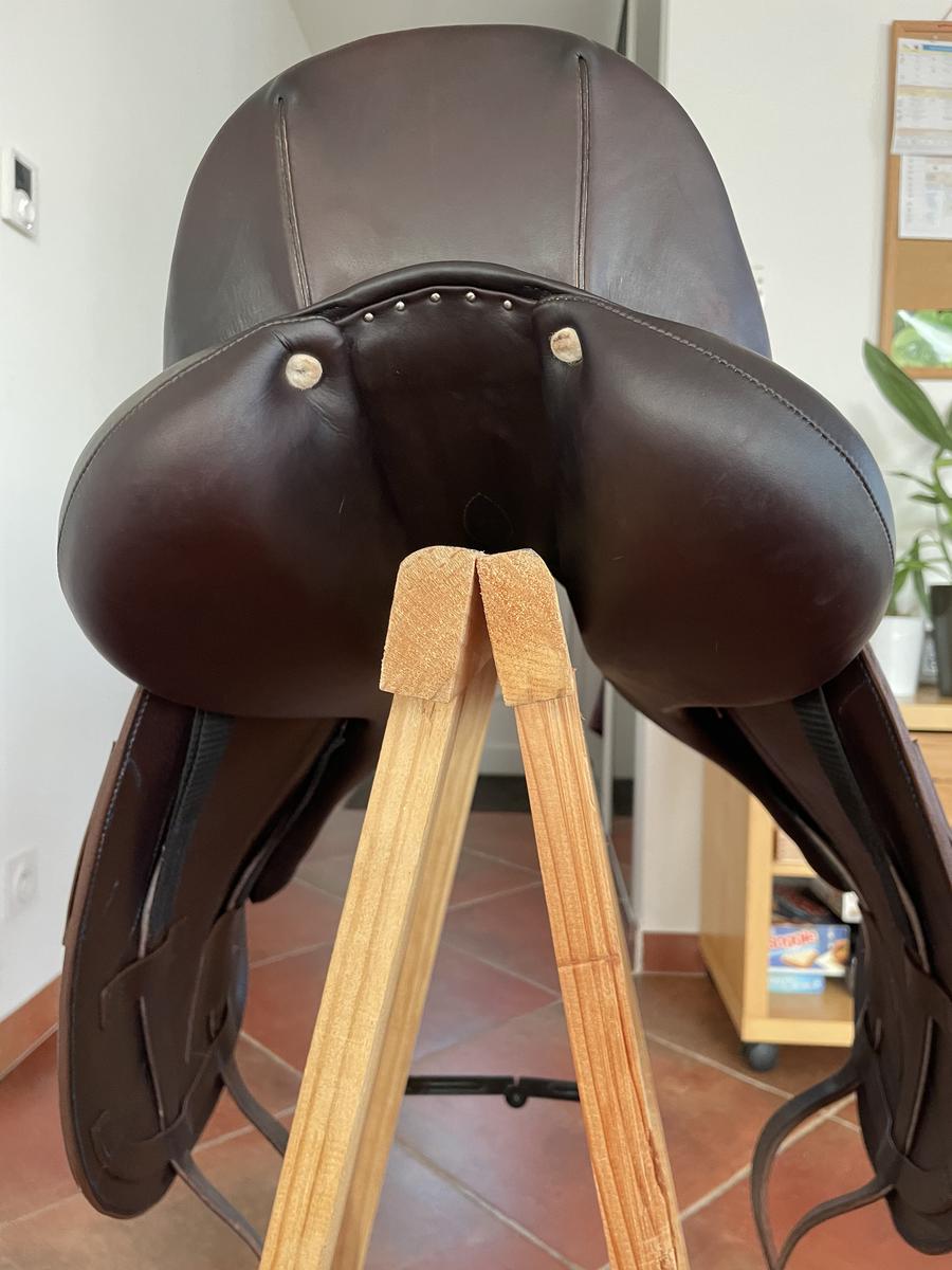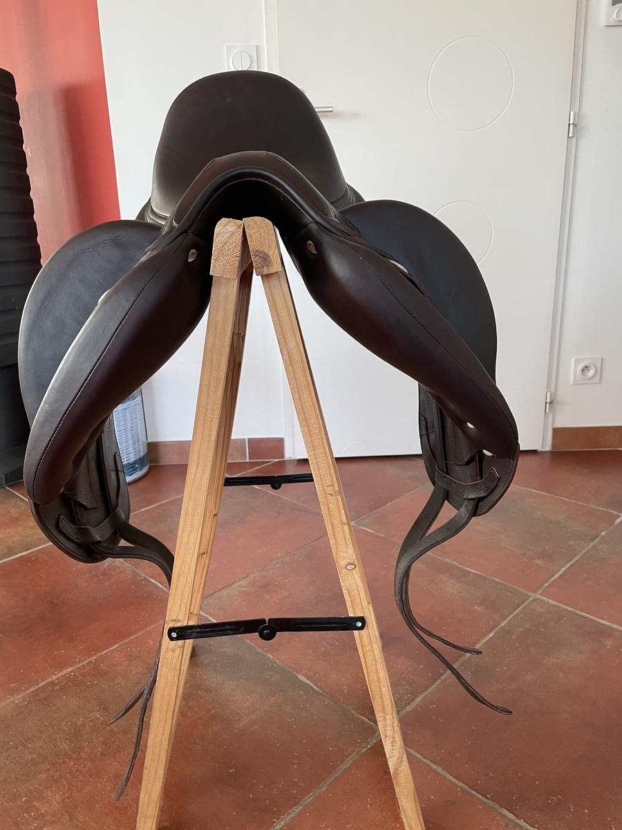 Elle est comme neuve : elle a très peu servi car j'ai été immobilisée 6 mois en 2022 pour blessure puis j'ai perdu mon cheval de DP en avril 2023 pour lequel elle était adaptée : un SF d'1m68 au garrot saillant. L 'arcade est donc conçue en fonction (arcade fermée).