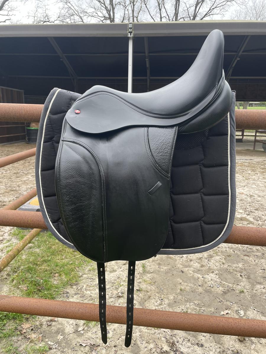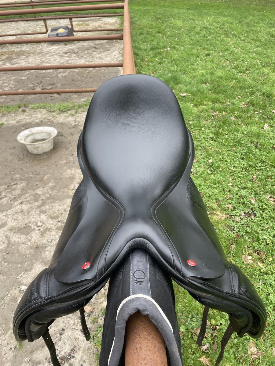 Je vends ma selle Thorowgood T8 dressage (LOW PROFILE MOVEABLE BLOCKS) en taille 17,5 pouces.