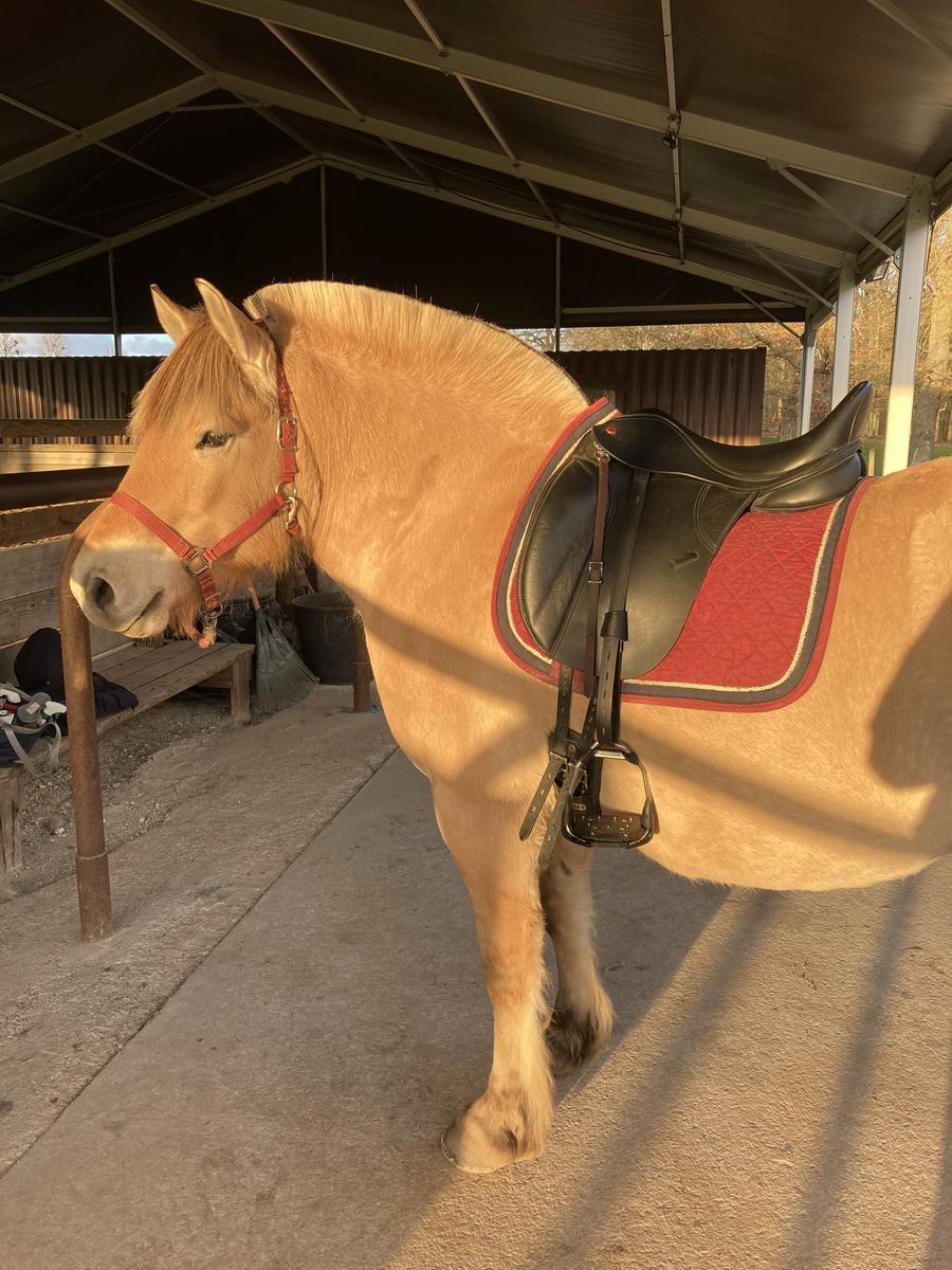 Je la vends car elle n’est plus adaptée à mon cheval, mais je la trouve très confortable, elle est top. Elle convient parfaitement à des chevaux avec peu de garrot, un dos/des épaules larges, mais peut être adaptée à d’autres types de chevaux en changeant l’arcade et en la refloquant.