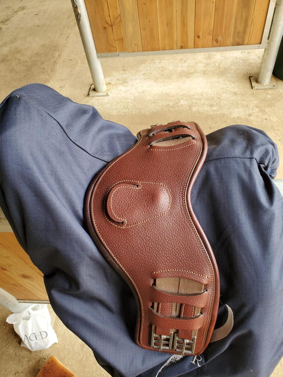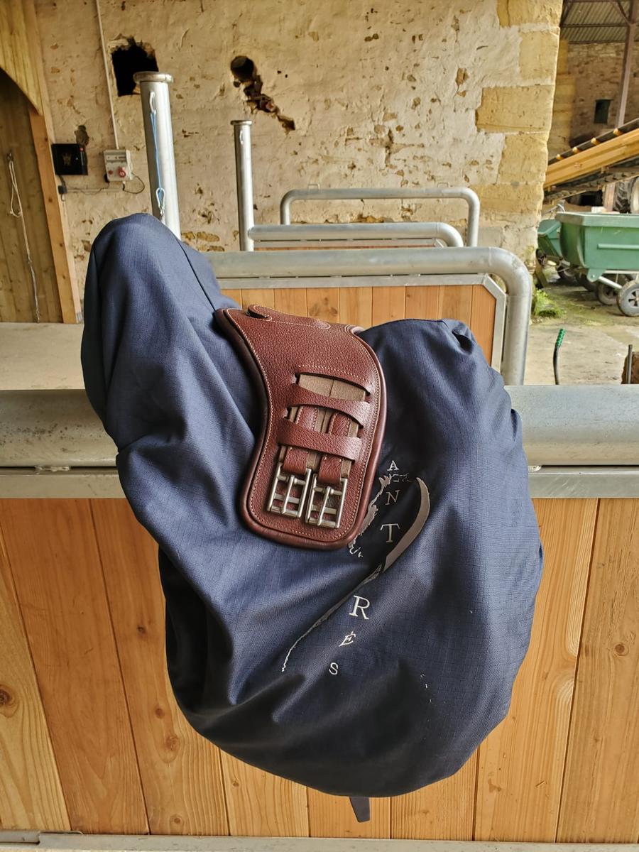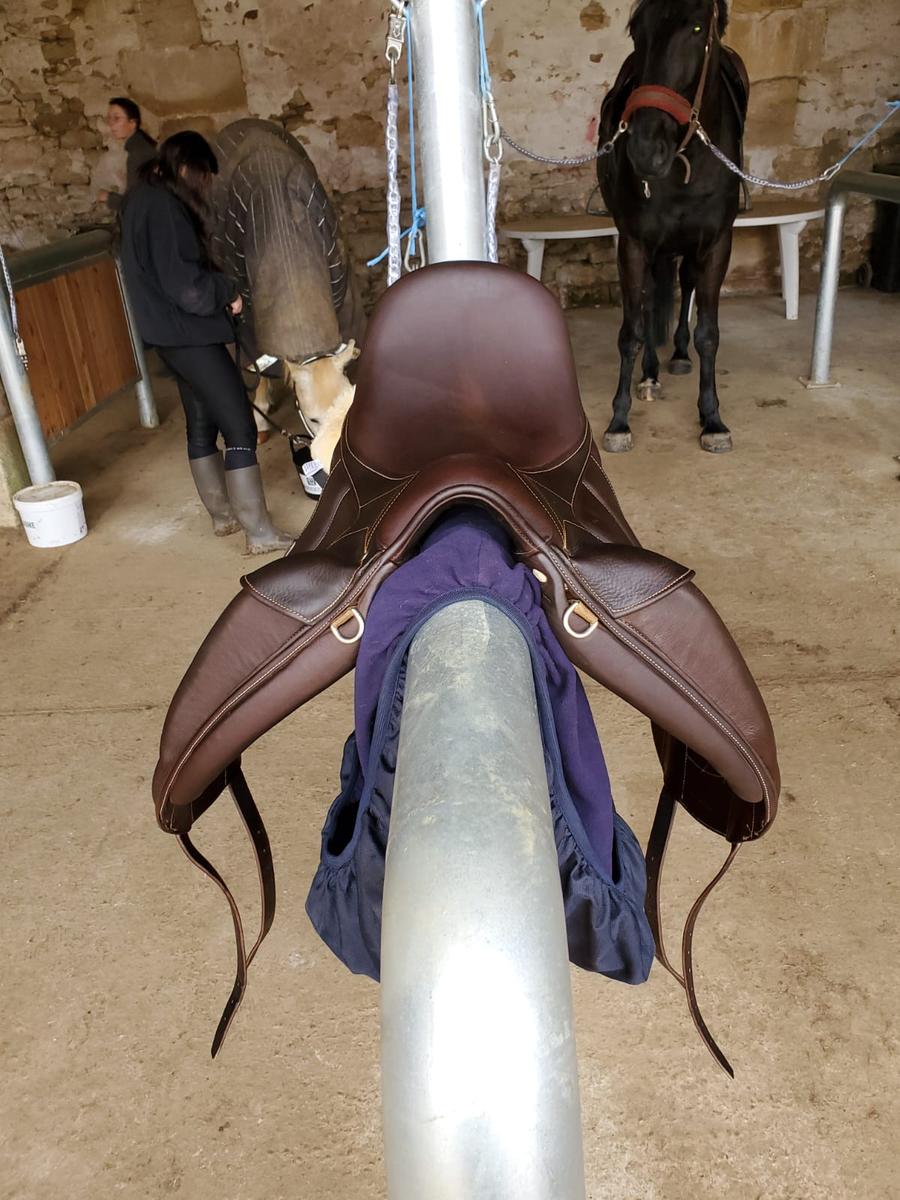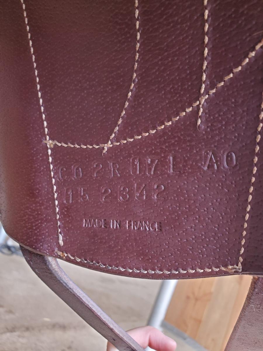Comme neuve, c'est un vrai fauteuil. Je m'en sépare car mon cheval (pur sang) a besoin d'une selle bcp moins large.