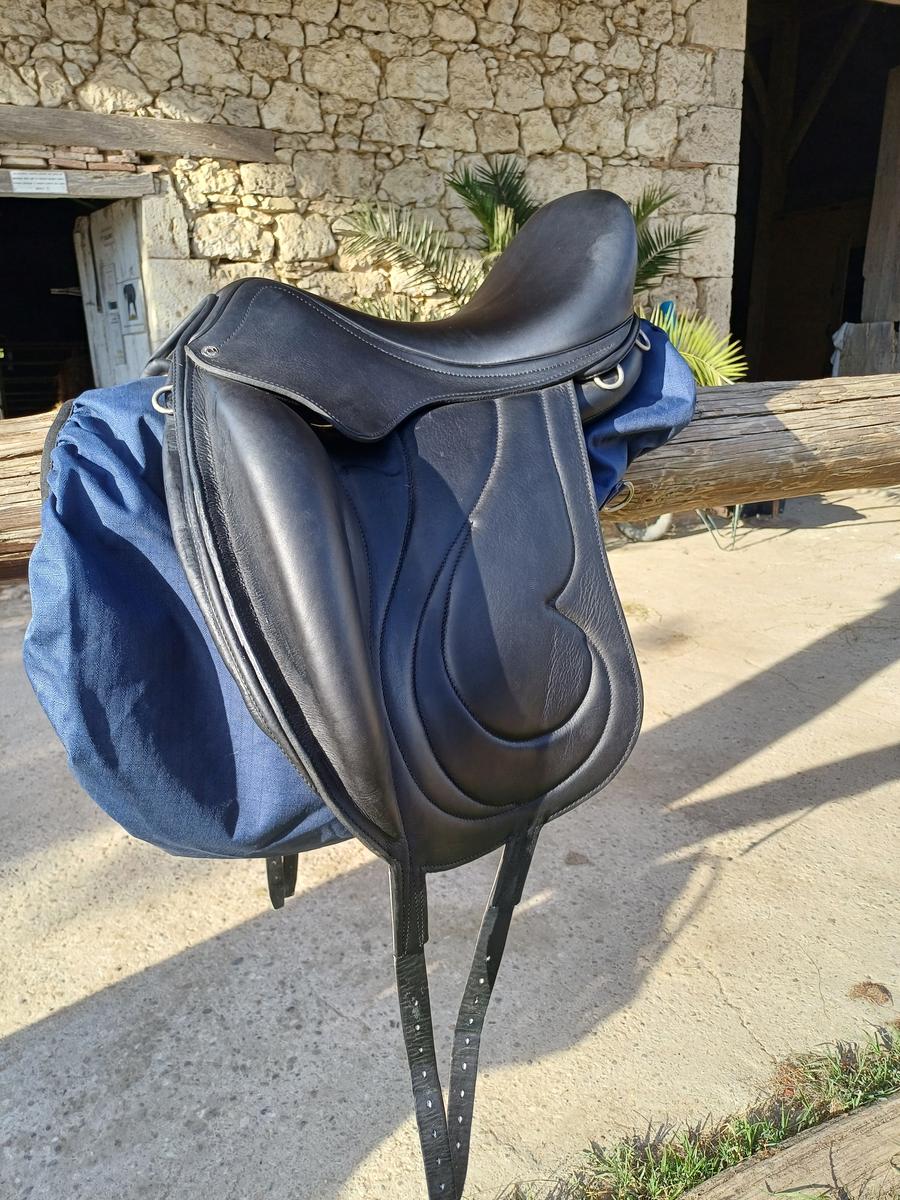 Selle Antares dressage Alliance semi creuse veau taille 17" quartier 3D taquet avant standard pas de taquets arrière.