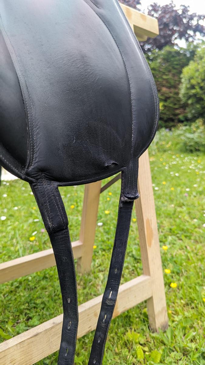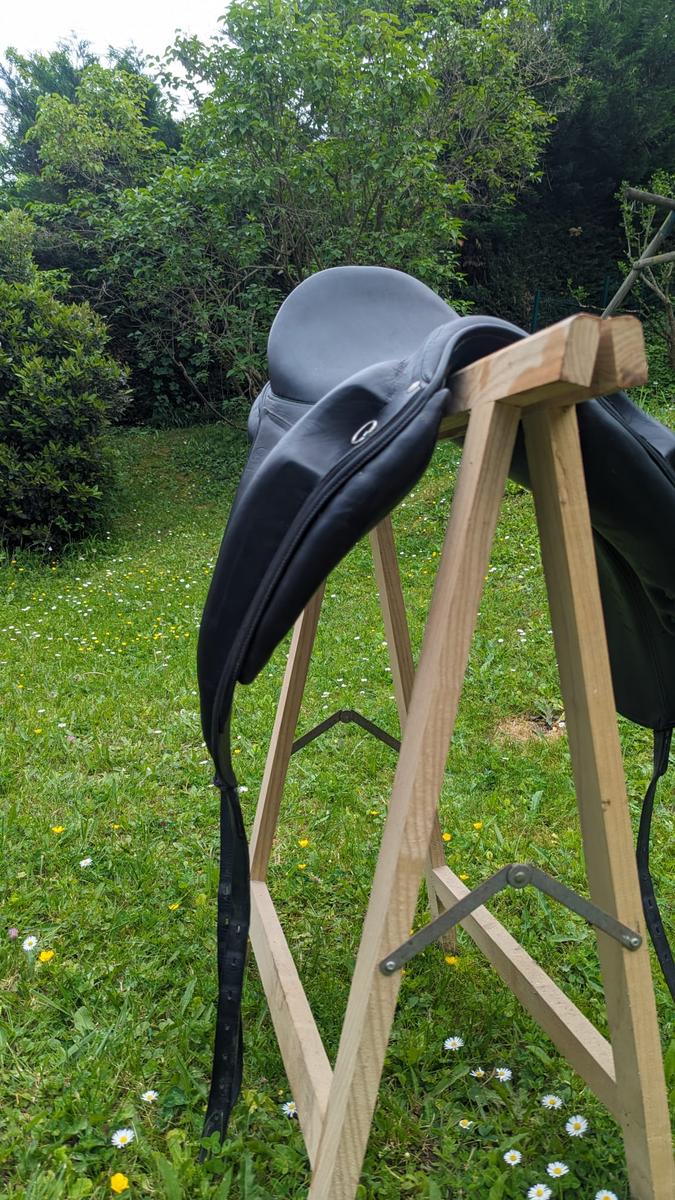 Vendue équipée Devoucoux : sangle, étrivières + housse de protection