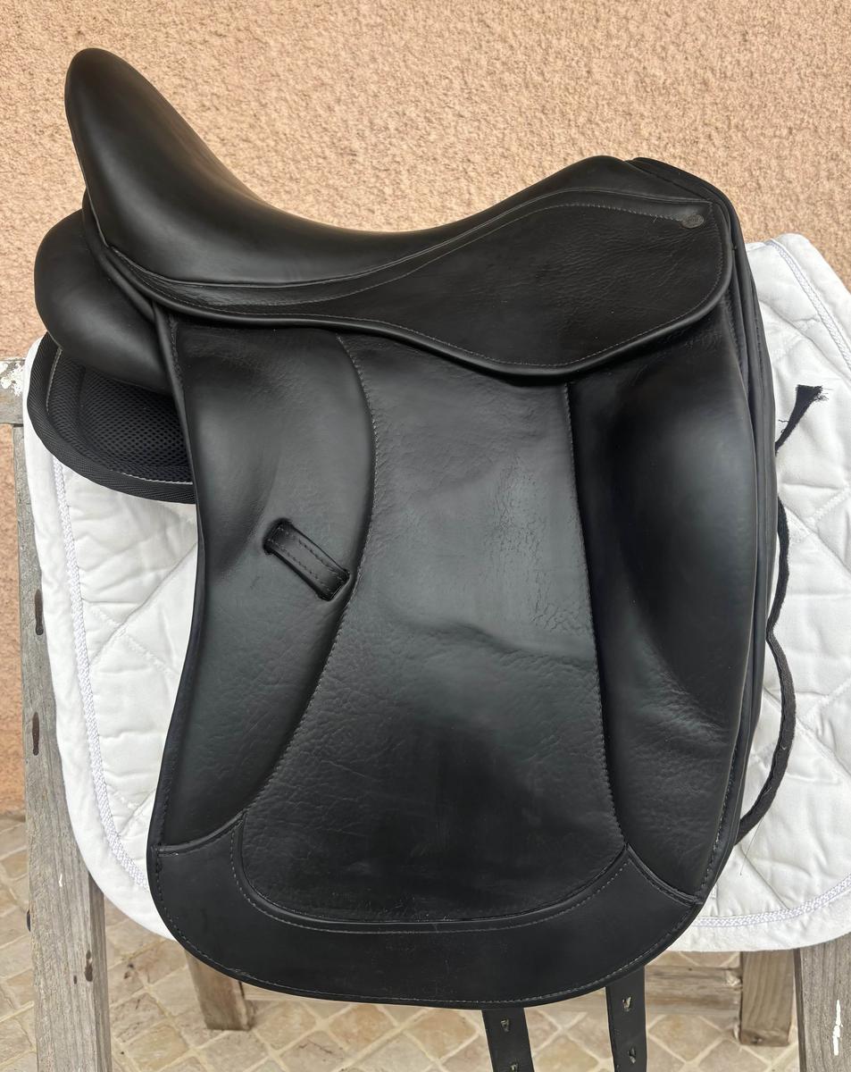 la selle de dressage Victoria est équipé d’un siège creux et de taquets conséquents à l’avant pour offrir une stabilité optimale au cavalier. elle possède un sanglage en V pour un maintien et un équilibrage parfait de la selle sur le dos du cheval. Elle est en cuir doublé veau pour une assise optimale pour le cavalier de compétition.
