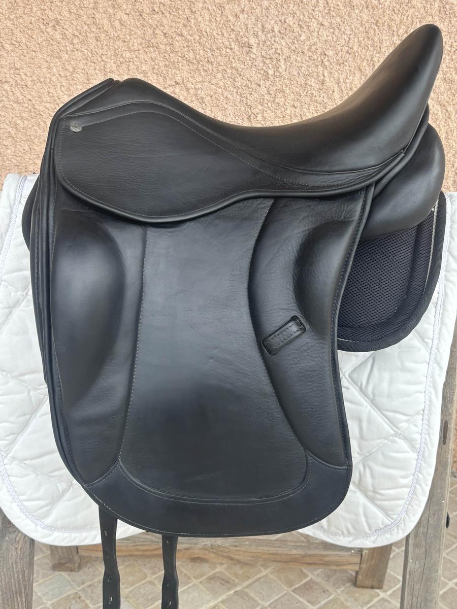 la selle de dressage Victoria est équipé d’un siège creux et de taquets conséquents à l’avant pour offrir une stabilité optimale au cavalier. elle possède un sanglage en V pour un maintien et un équilibrage parfait de la selle sur le dos du cheval. Elle est en cuir doublé veau pour une assise optimale pour le cavalier de compétition.