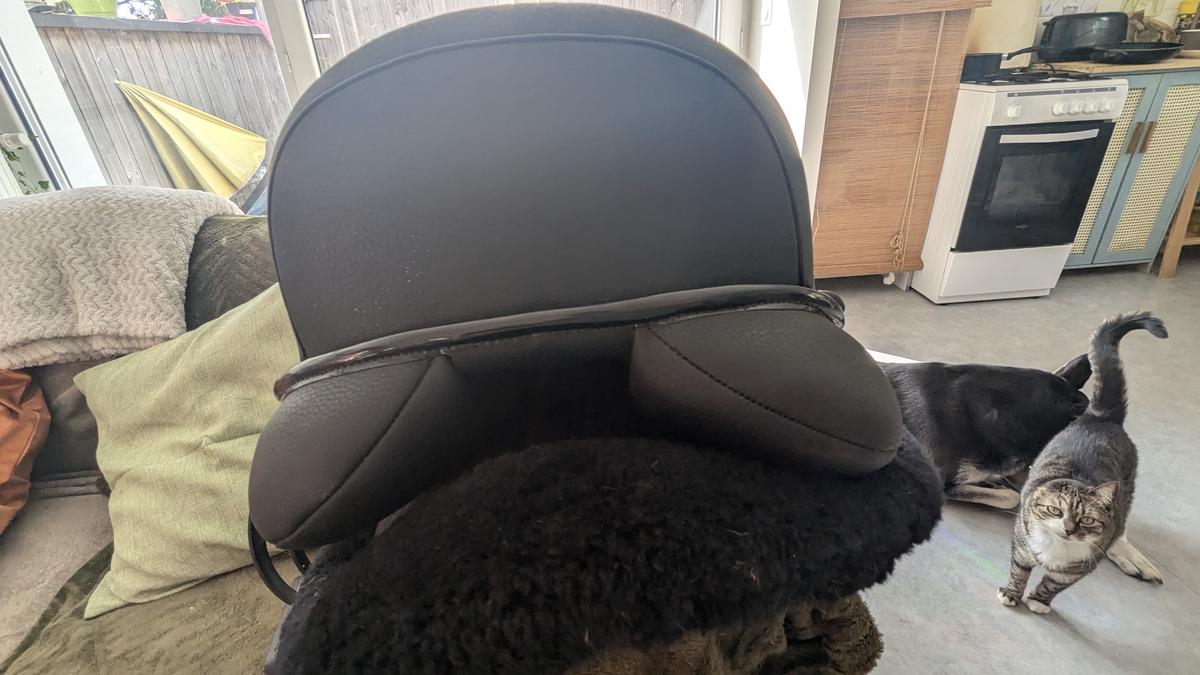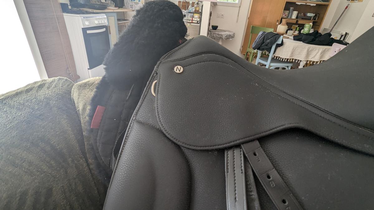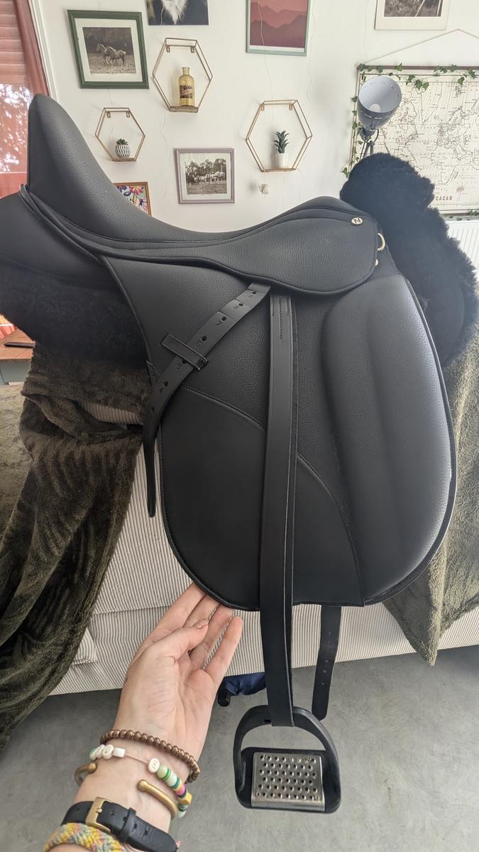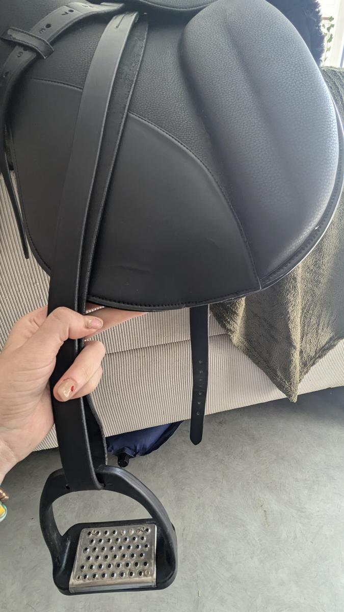 Vendue avec étrivières, étriers, sangle, amortisseur le mieux, et housse
