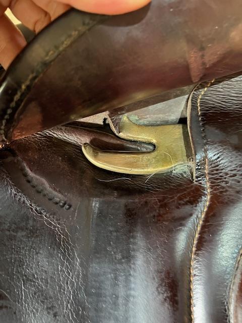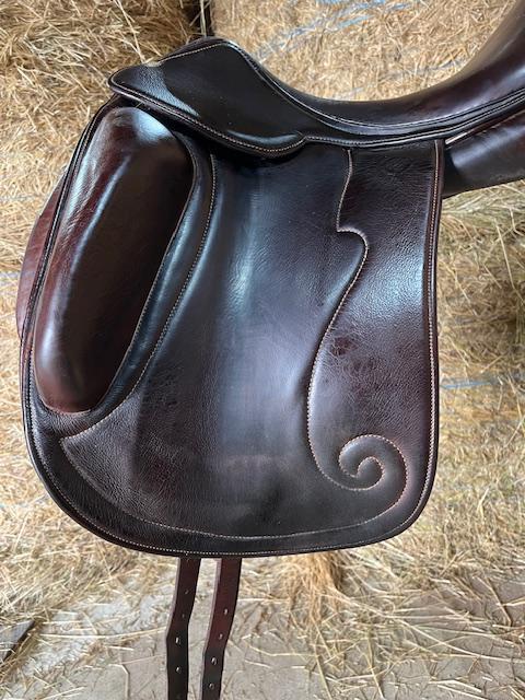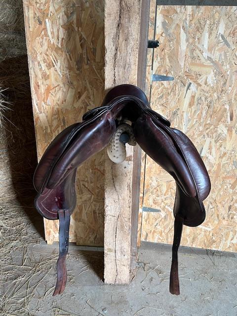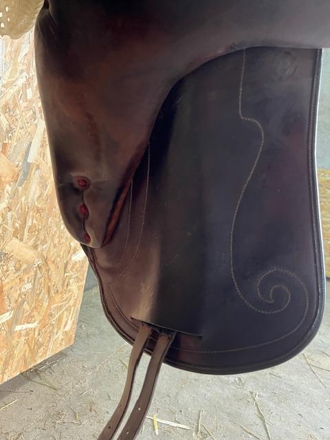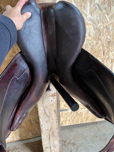 Très belle selle de dressage en cuir marron doublée veau belle patine