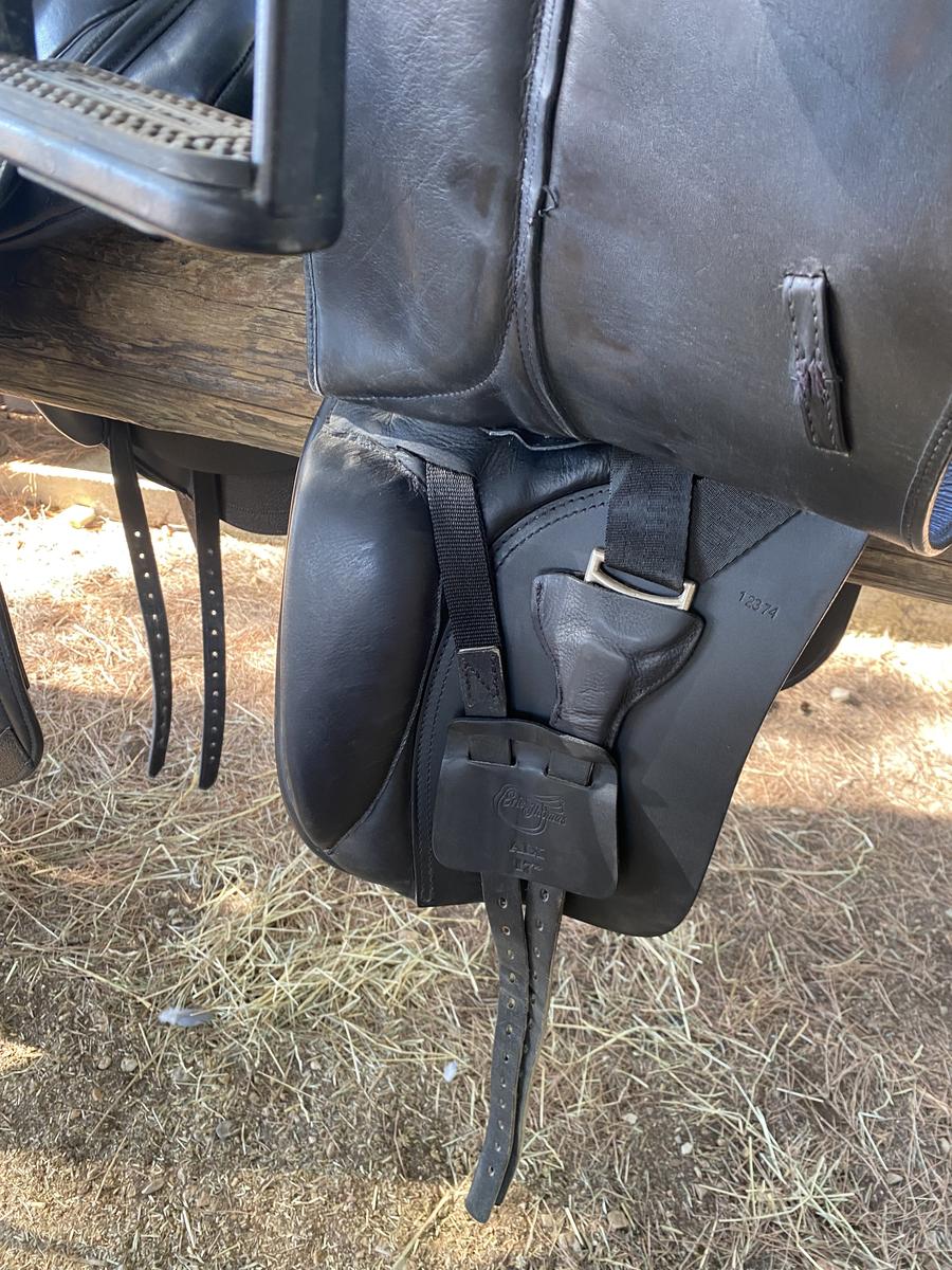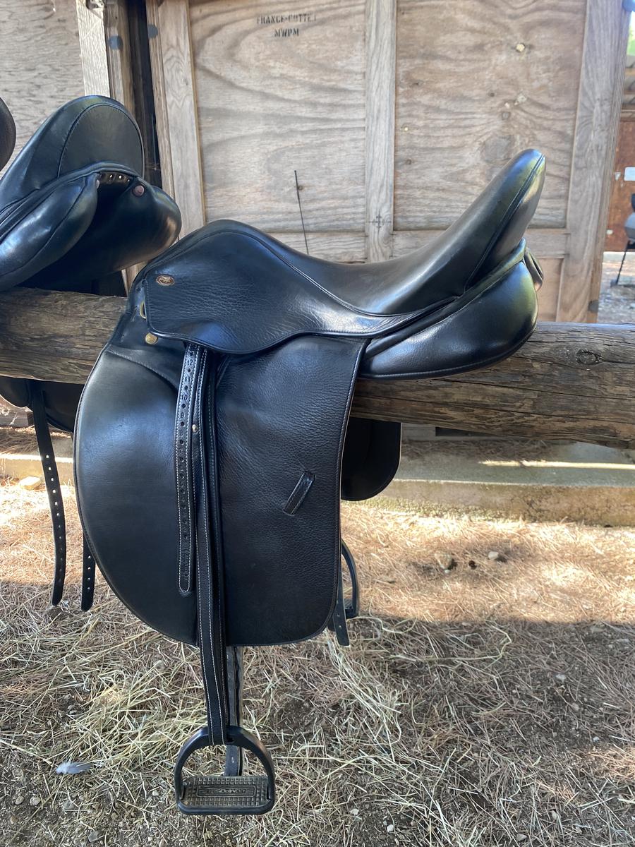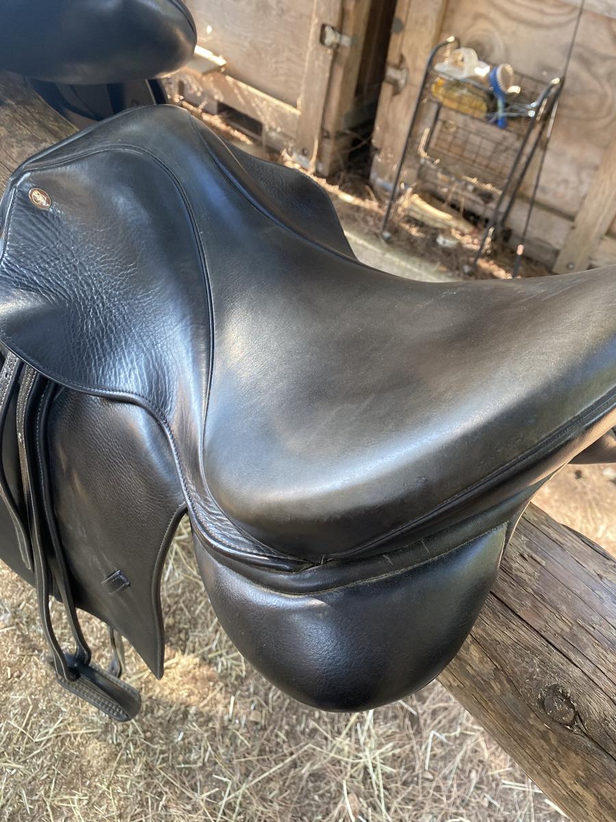 C’est une selle de dressage noir en 17 pouces en très bon état qui date de 2018. À vendre 640€ au lieu de 1135€ neuf.