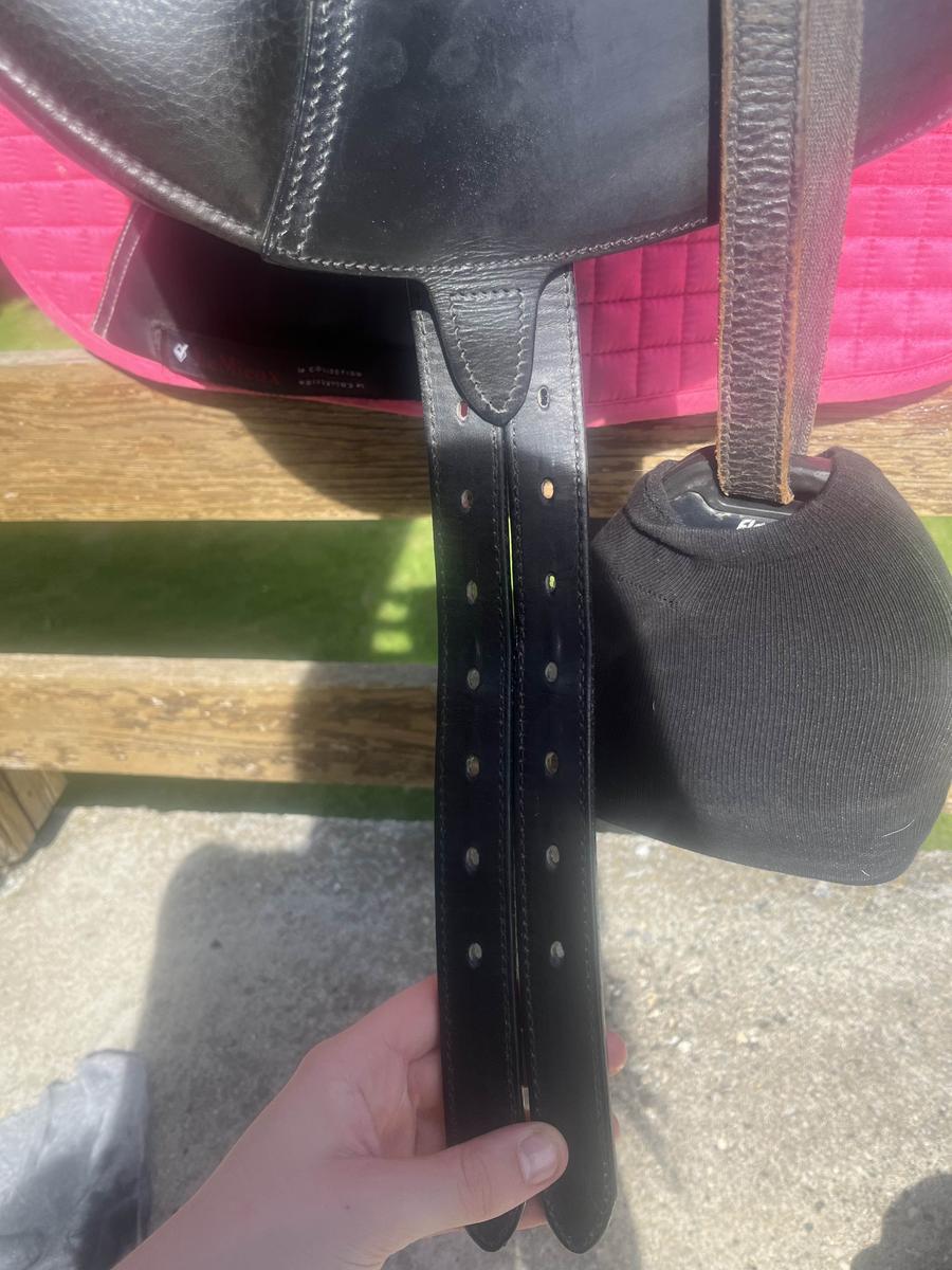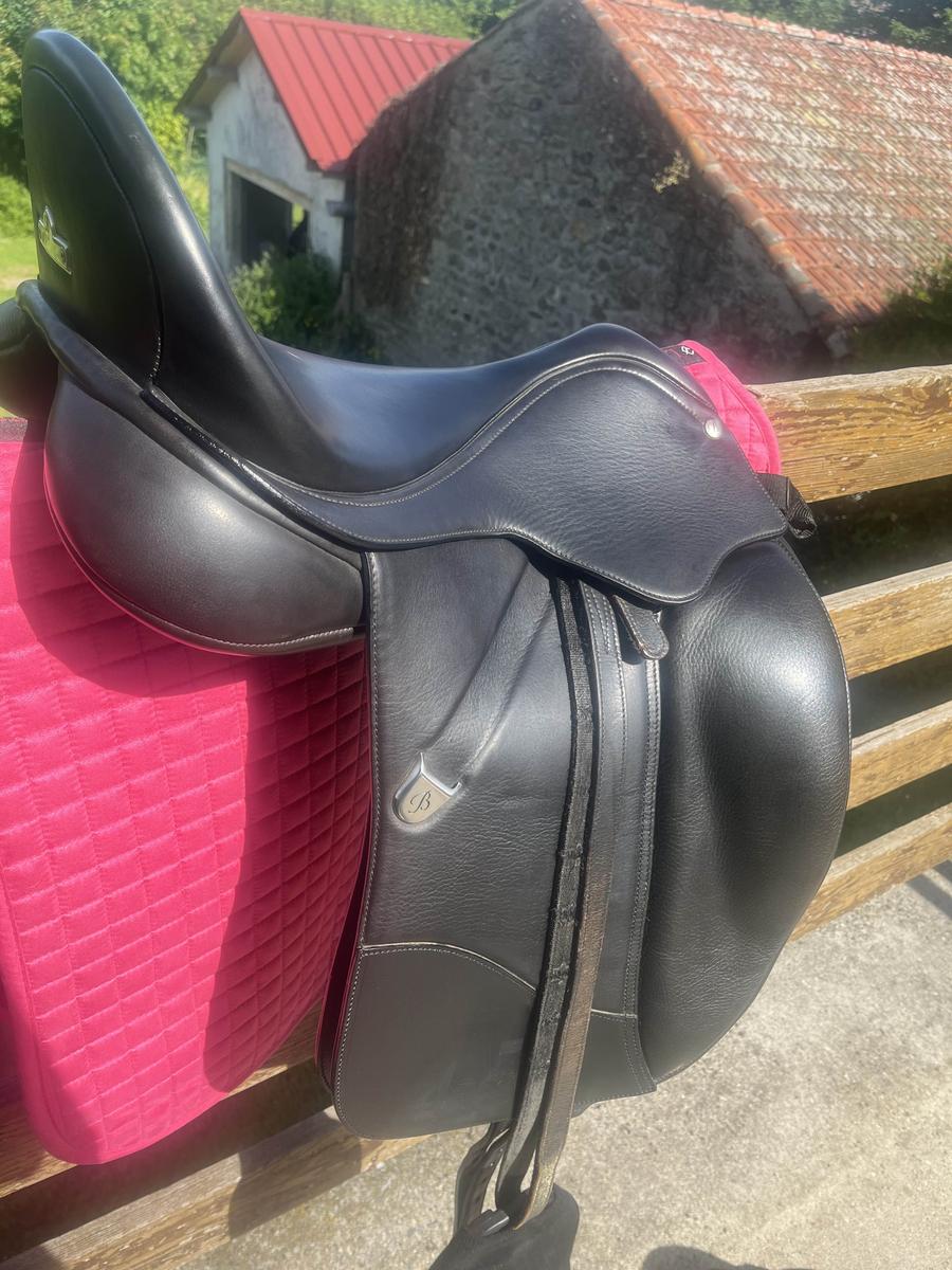 Possibilité de fournir également : Sangle anatomique à mémoire de forme kramer 70cm, étrivières de dressage bates, tapis de dressage Le Mieux...