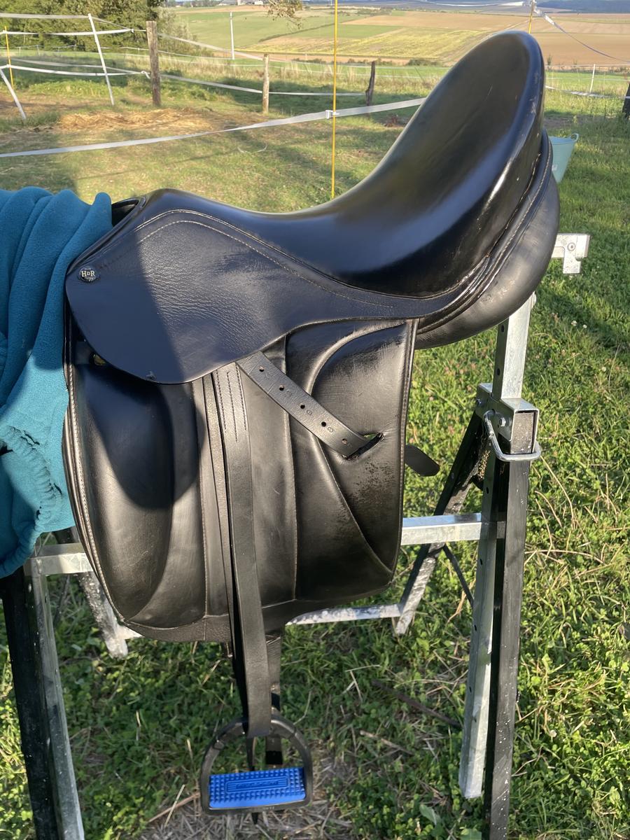 Vends selle de dressage Henri de Rivel 17 pouces, siège creux.