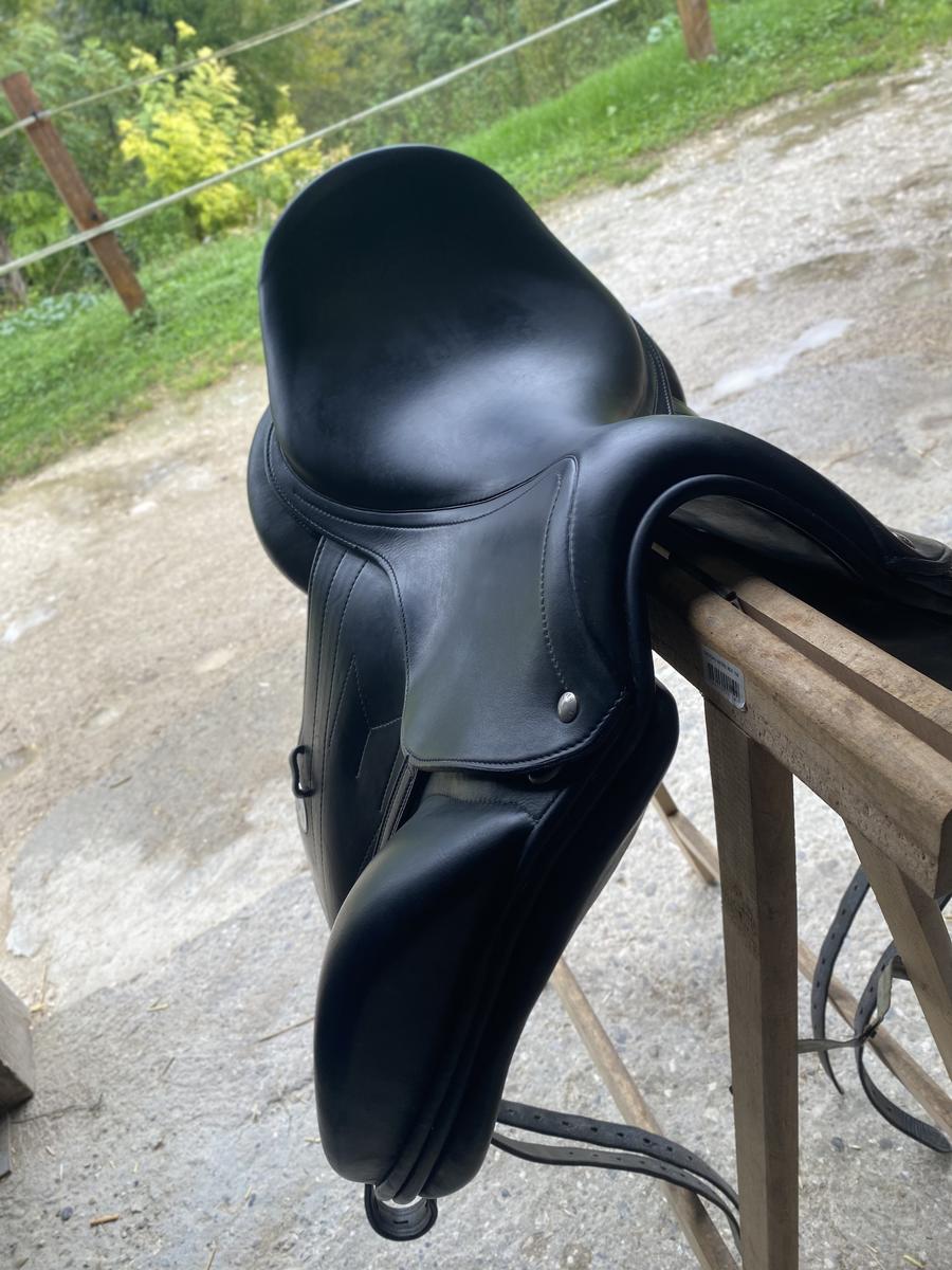 Je vends la selle de dressage de mon cheval . Très peut utilisé, mais toujours très bien entretenu. Selle recommandée pour les chevaux aux garrots prononcés. Taille 17, année 2019