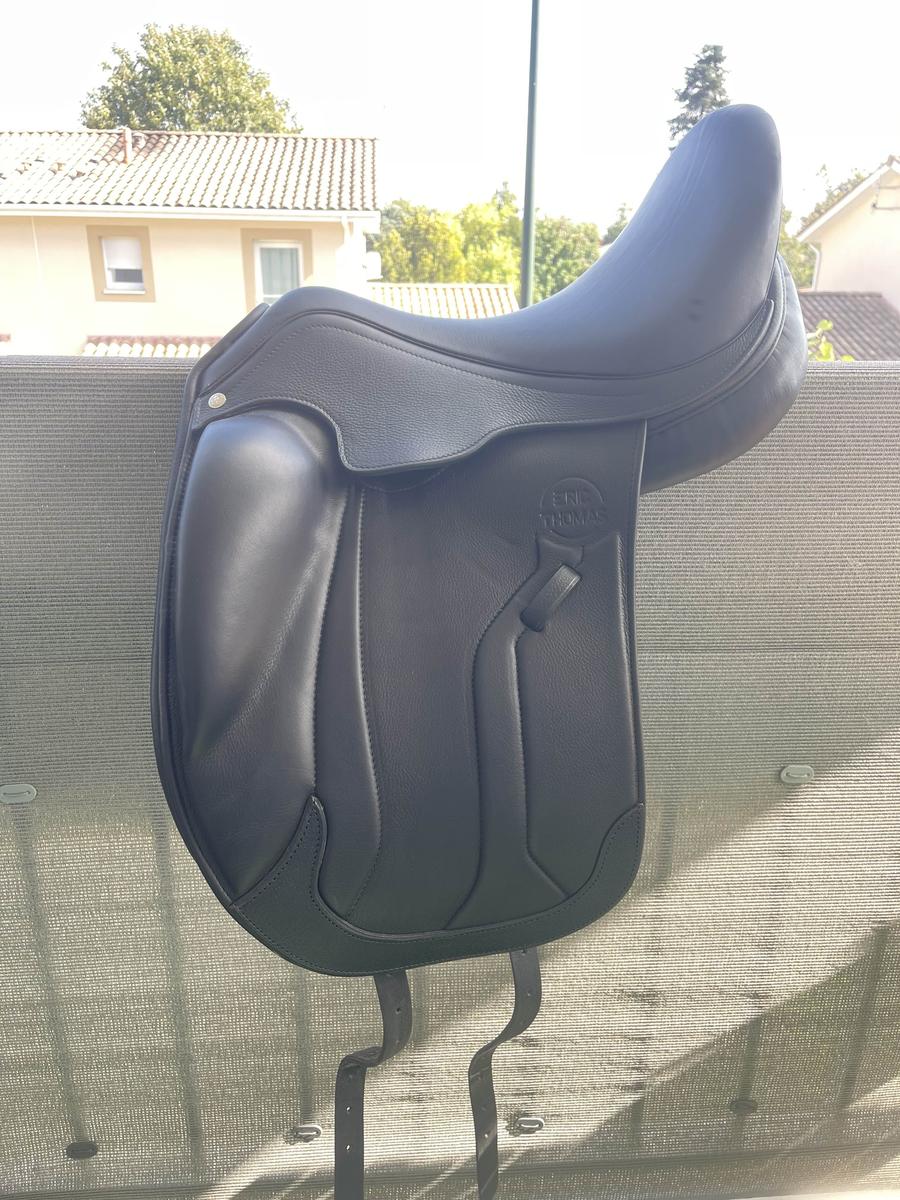 Superbe selle de dressage Antares x Eric Thomas Modèle DTA (Design and Technologie by Antares) Elle s’adapte à un grand nombre de chevaux Possibilité de changer la position des sanglons pour l’adapter au mieux au dos de son cheval Toujours entretenu avec la savon glycériné après chaque utilisation Couleur : noir Taille : 17pouces Possibilité d’essai sur la region Bordelaise Possibilité d’envoi sans retour