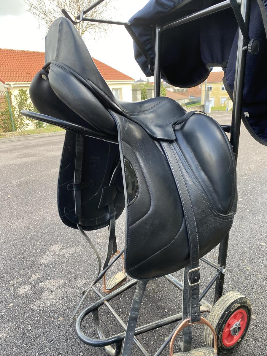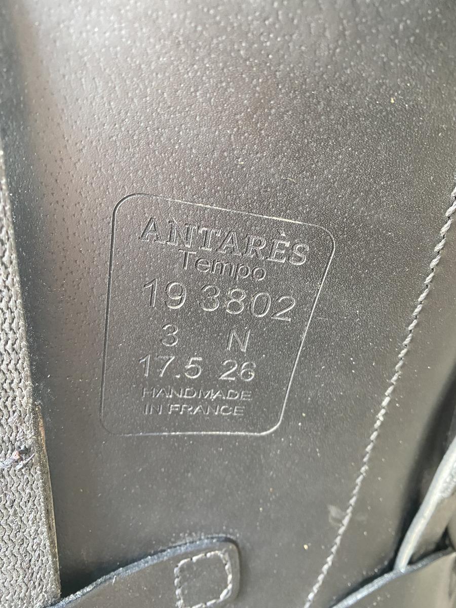 Vends selle dressage Antares modèle Tempo taille 17,5 pouces et longueur quartier 3N en très bon état, peu servie , cuir et vernie , seul quelques marques sur le haut du troussequin -cf photos n 6-