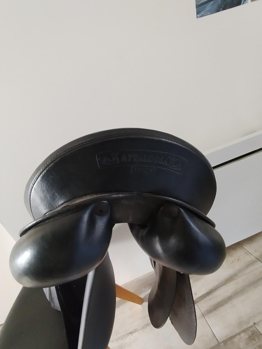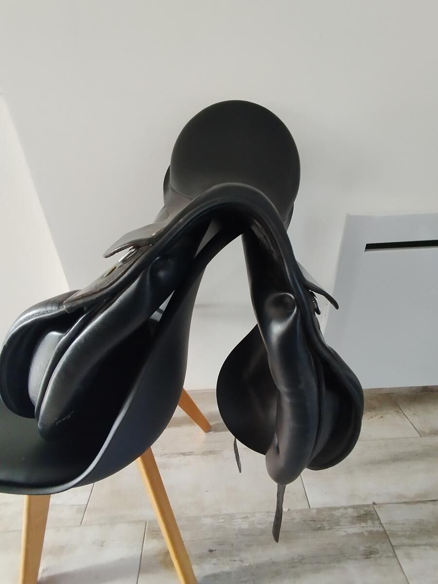 Vends selle Dressage Prestige (Hippos) 17" modèle Appaloosa. Elle n'est pas toute jeune mais en parfait état modèle avec arçon thermoformable actuellement réglée pour un cheval avec un fort garrot. Nous ne faisons quasiment plus que de la randonnée donc j'ai évolué vers une endurance. Vendue nue avec un couvre selle.