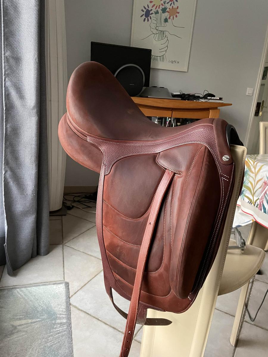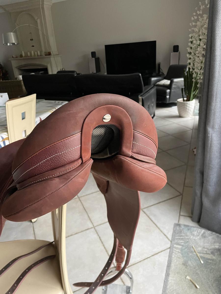 selle de dressage makila marron devoucoux 18 pouces utilisées 2 fois.