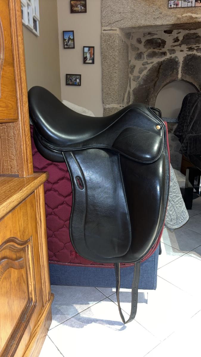 Je vend ma selle de dressage car elle ne convient plus à mon nouveau poney, elle est très bien entretenu n’a que une légère trace d’usure au niveau du passage d’ étrivière c’est un siège 17"