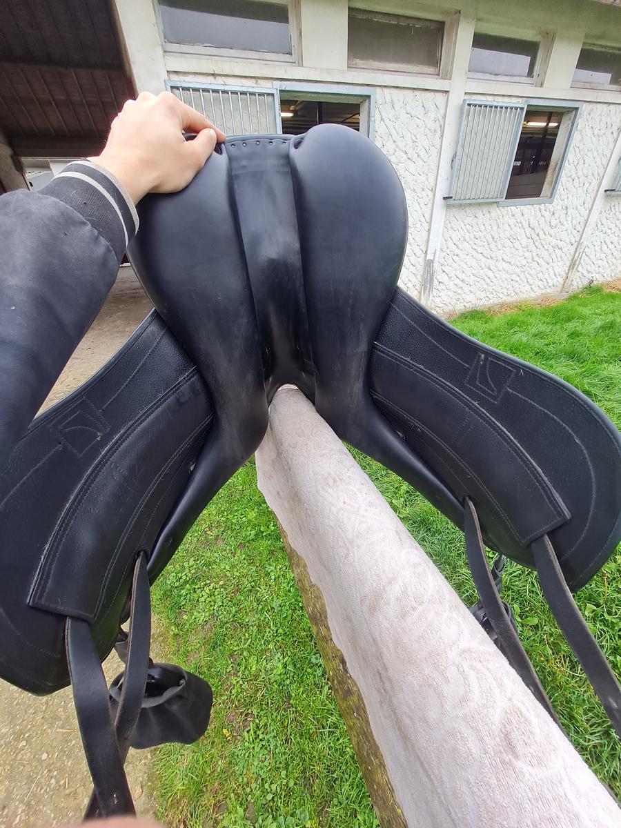 Vendu avec étrivières (60cm) et sangle (55cm) autres marques