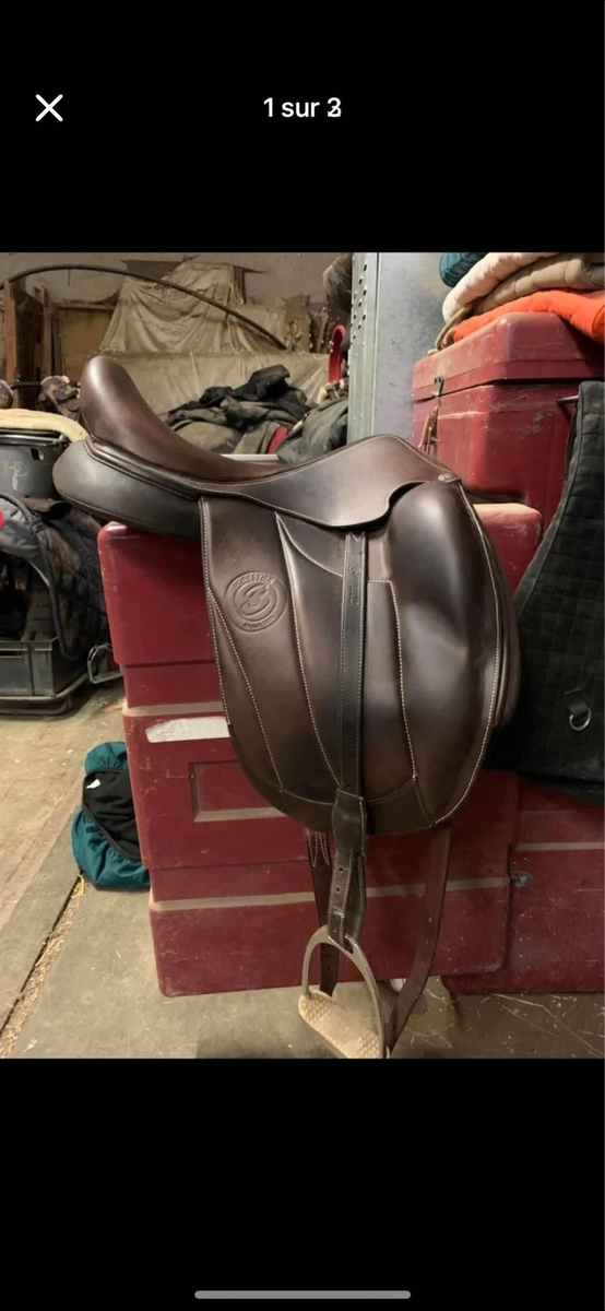 Vendue toute équipée (housse de selle, étriers, étrivières forestier et sangle anatomique forestier).