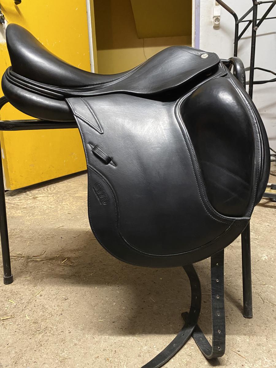 Selle de dressage CWD 18 pouces, modèle SE08 quartiers 2XL. En très bon état, toujours bien entretenue. Vendue avec sa housse et des étrivières taille 135cm dressage CWD. Achetée d’occasion en 2019 chez CWD, facture à l’appui. Utilisée sur plusieurs types de chevaux et poney D.