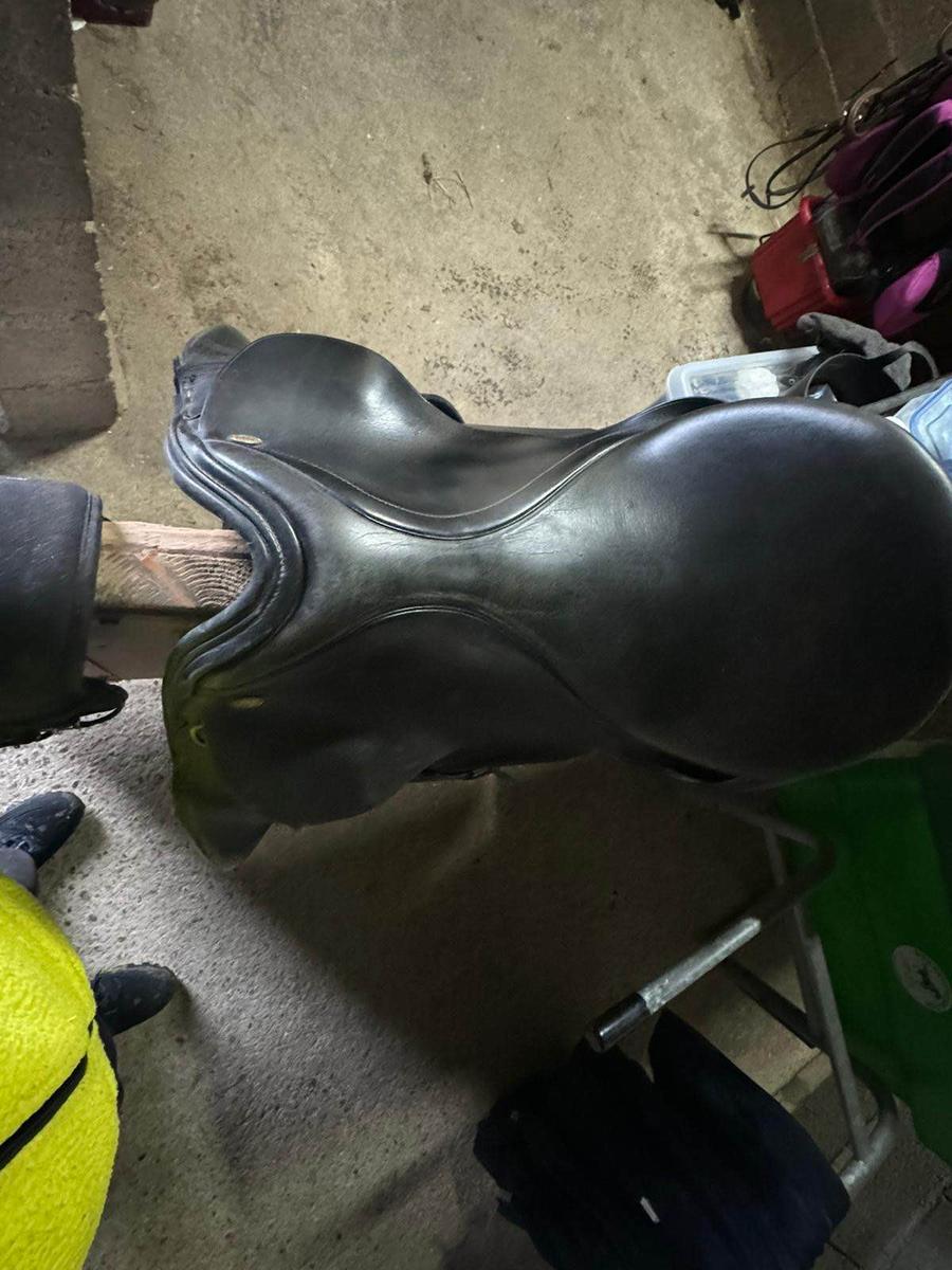 selle dressage TULMAN cuir noire toute équipée avec housse et tapis de selle également.