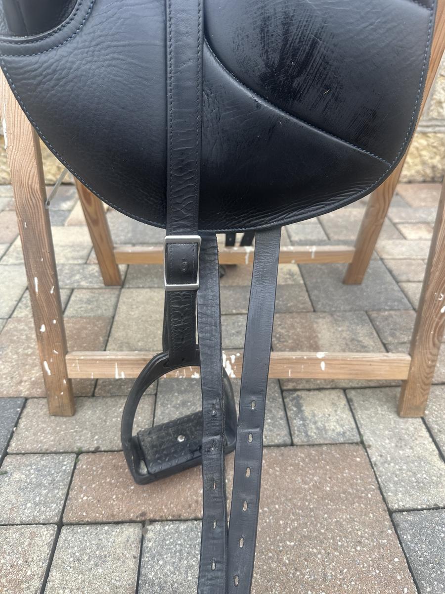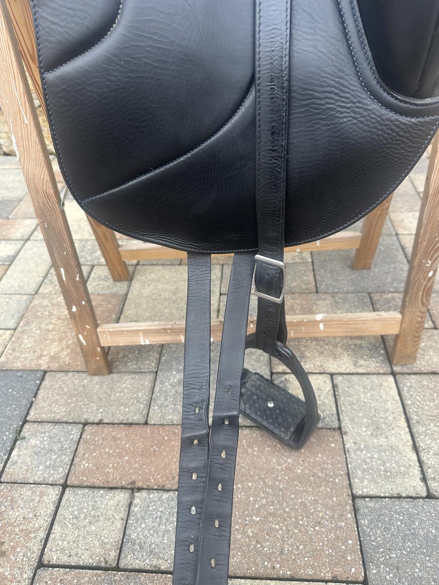 Vendue avec un protège selle antares, étrivières mono branches antares, étriers composite et sangle courte en cuir 50
