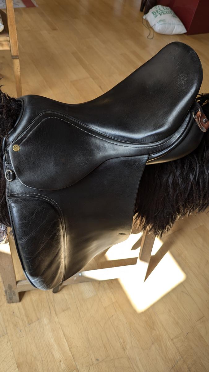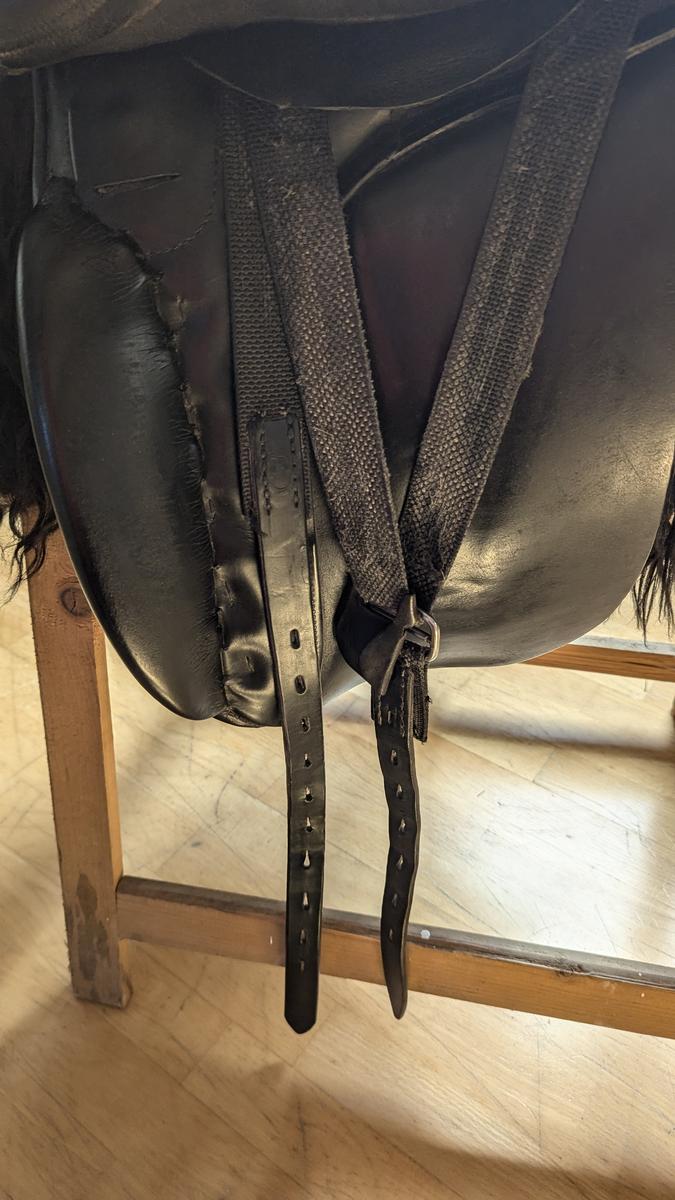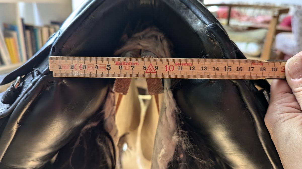 La selle de tölt de Busse en taille 17,5 a une largeur de chambre moyenne. Actuellement, l'arçon bleu est monté.