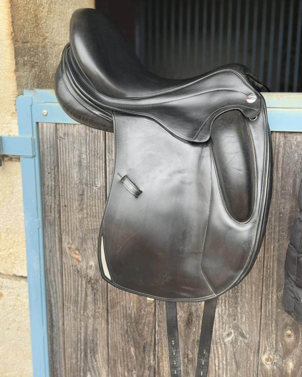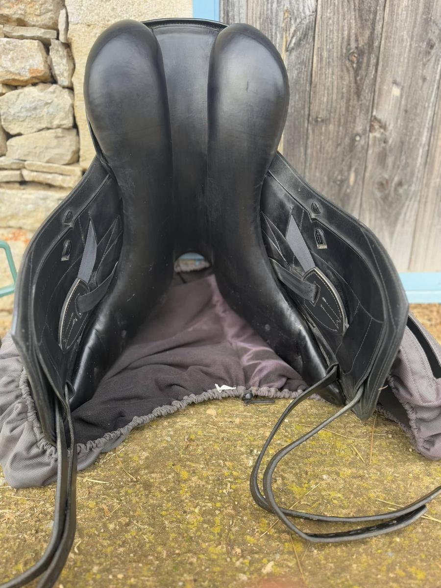 Selle de dressage noire en cuir de marque ERREPLUS modèle Freestyle , de 2020. Bon état, rien à signaler, toujours très bien entretenue.