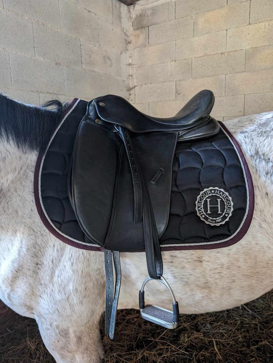 Vendue avec étrivières noires 145 cm et étriers de sécurité articulés Sprenger et couvre-selle.