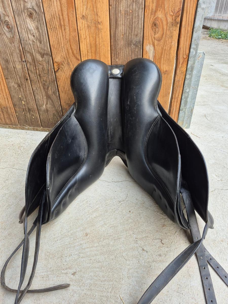 Bonjour je vends ma selle de dressage Isabelle Werth. La selle a été vérifiée par une saddle fitter, qui a également changé le système à coussin d'air par un reflockage laine de très bonne qualité.
