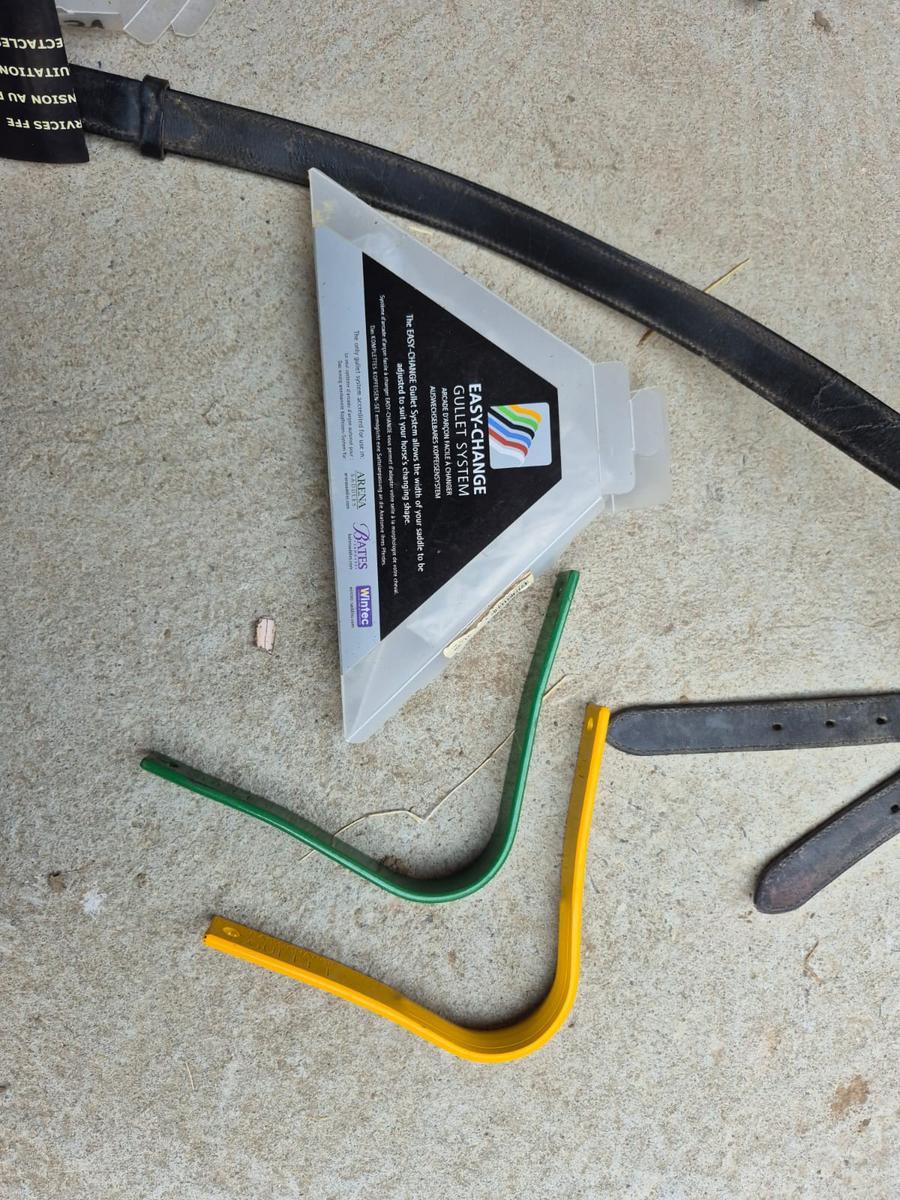 Avec la selle je vends également 3 tailles d'arcade easy change : la jaune, la verte et la noire (actuellement en place dans la selle)
