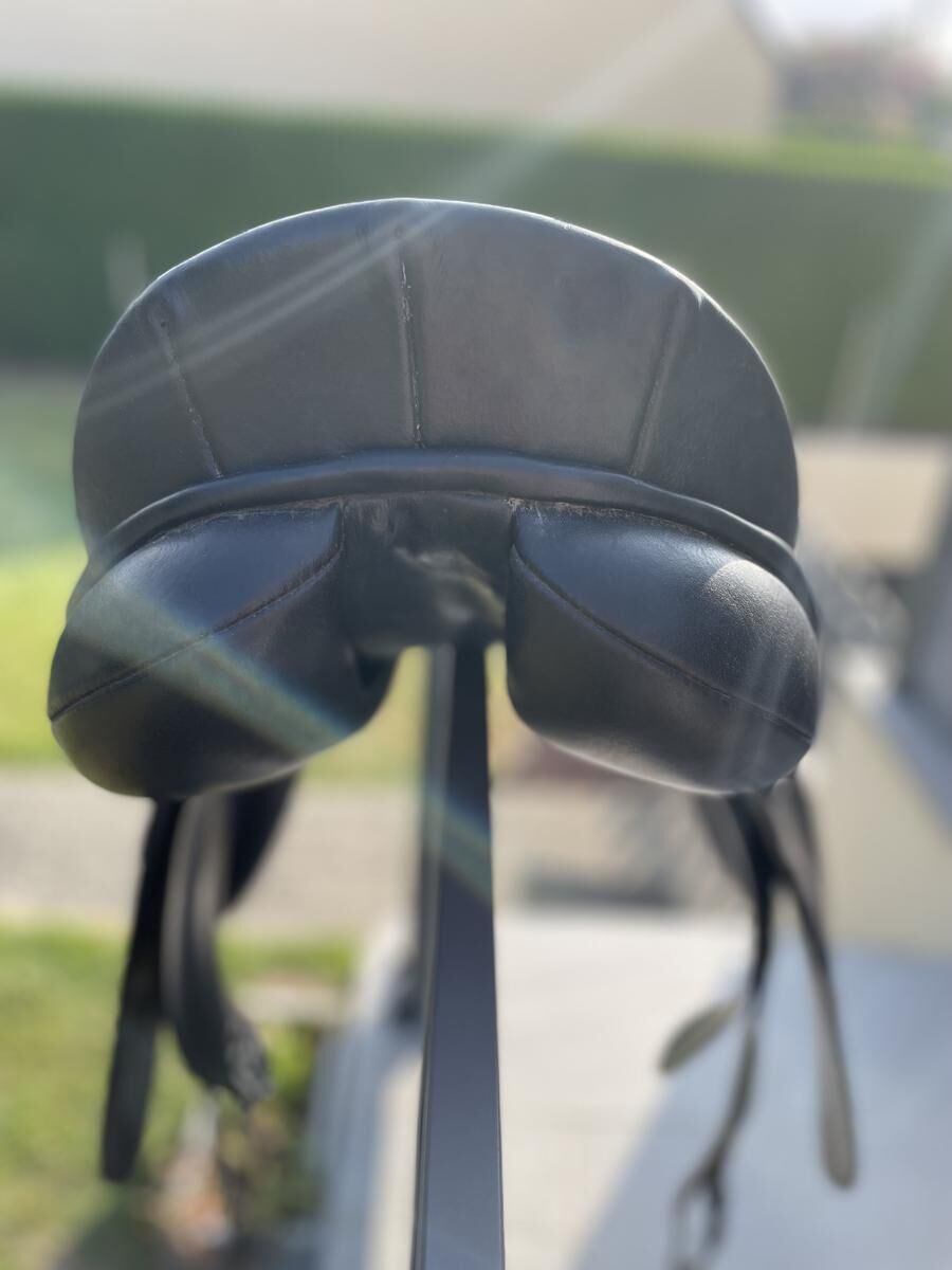 Elle a été bien entretenue et n'a que peu de signes d'usure (Un sanglon se dédouble mais n’empêche pas la bonne utilisation). C'est une excellente opportunité pour les amateurs de dressage à la recherche d'une selle de qualité à un prix abordable.