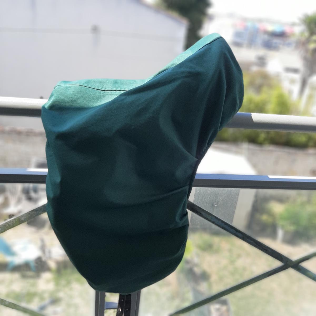 Taille 17 pouces, avec étrivières, étriers, sangle et housse de selle imperméable.
