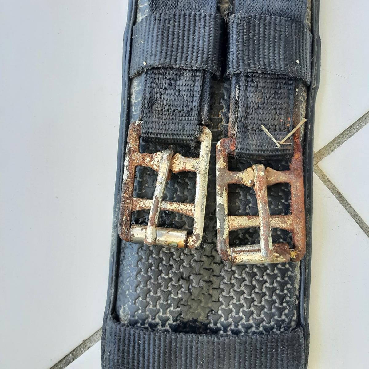 ainsi qu'au niveau des attaches de sanglons qui sont rouillés (cf. photo).