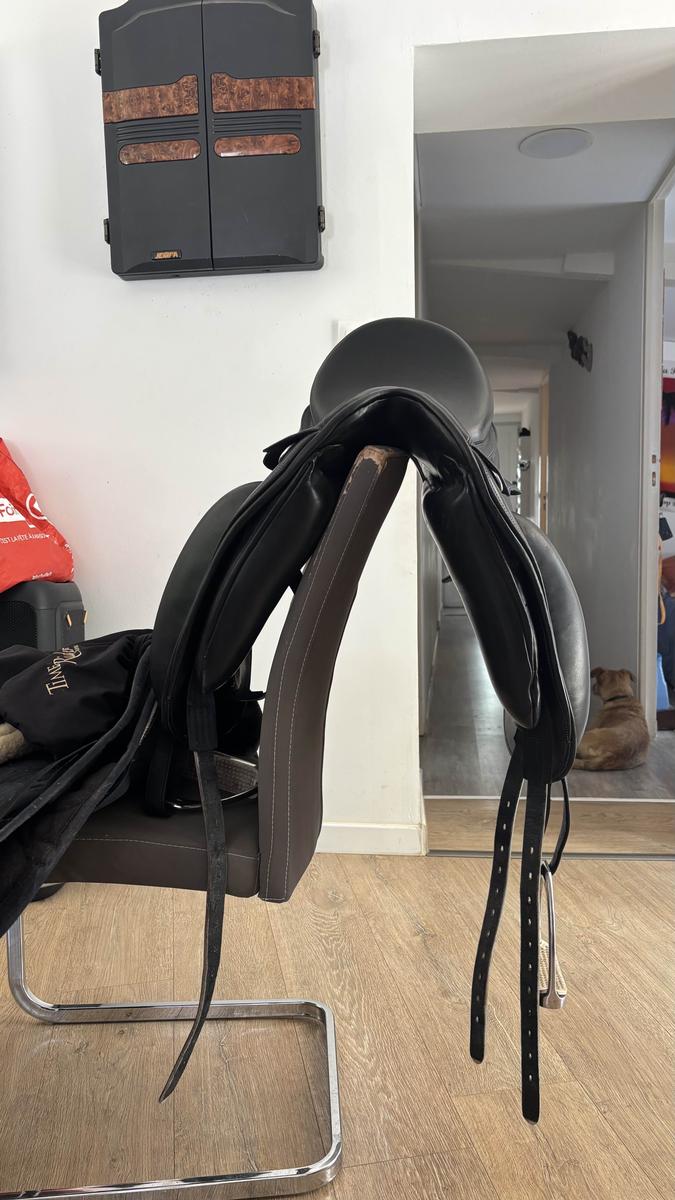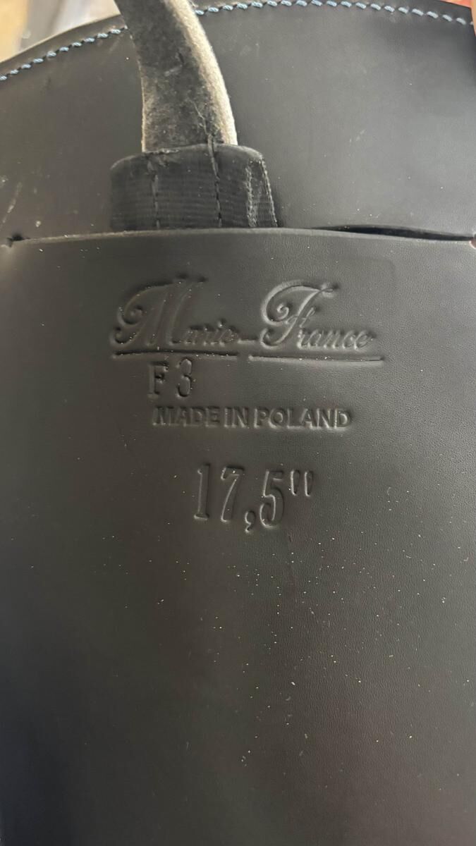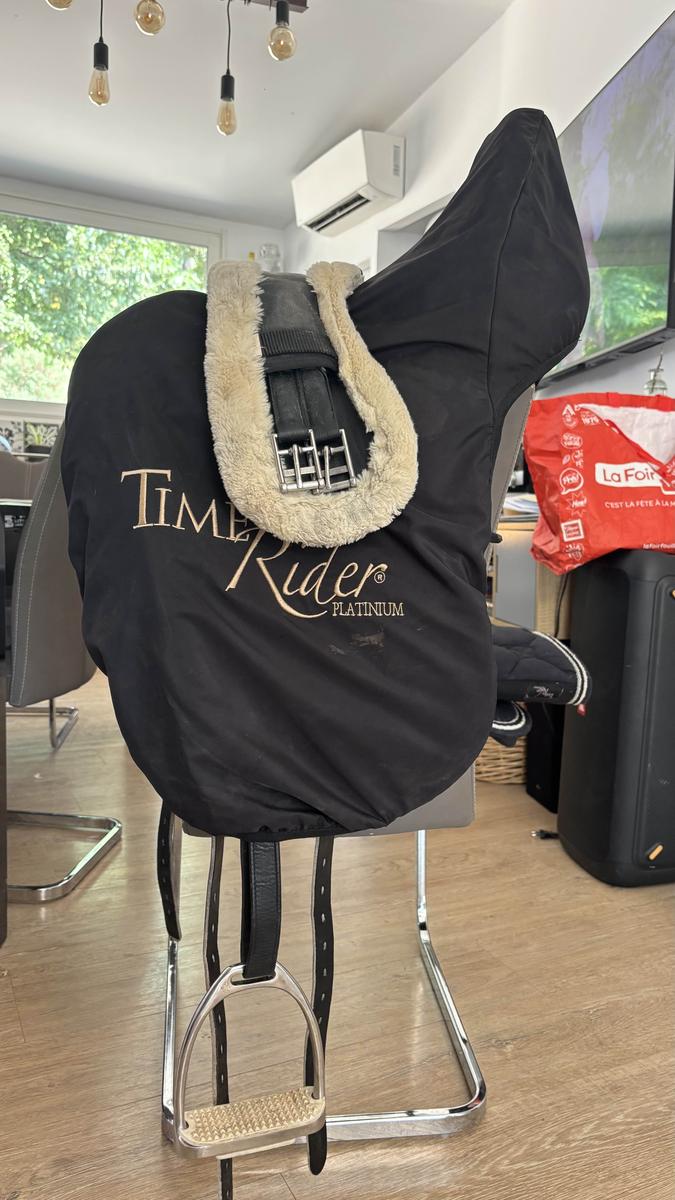 selle de dressage Time rider noir avec détail bleu, modèle Marie France, 17,5 pouces, et quartier F3. selle en très bon état, toujours bien entretenue, utilisé moins de 10 fois car elle ne me correspond pas. elle est vendue équipée, avec les étrivières, le tapis et la house de la même marque ainsi que les étriers, avec une sangle norton et partira avec tout. prix négociable dans la limite du raisonnable,n'hésitez pas a m'envoyer un message pour toute info supplémentaire !
