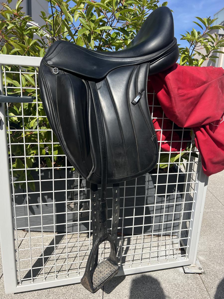 Je vends ma selle de dressage Equipe Viktoria 17,5 pouces arçon carbone de 2016.