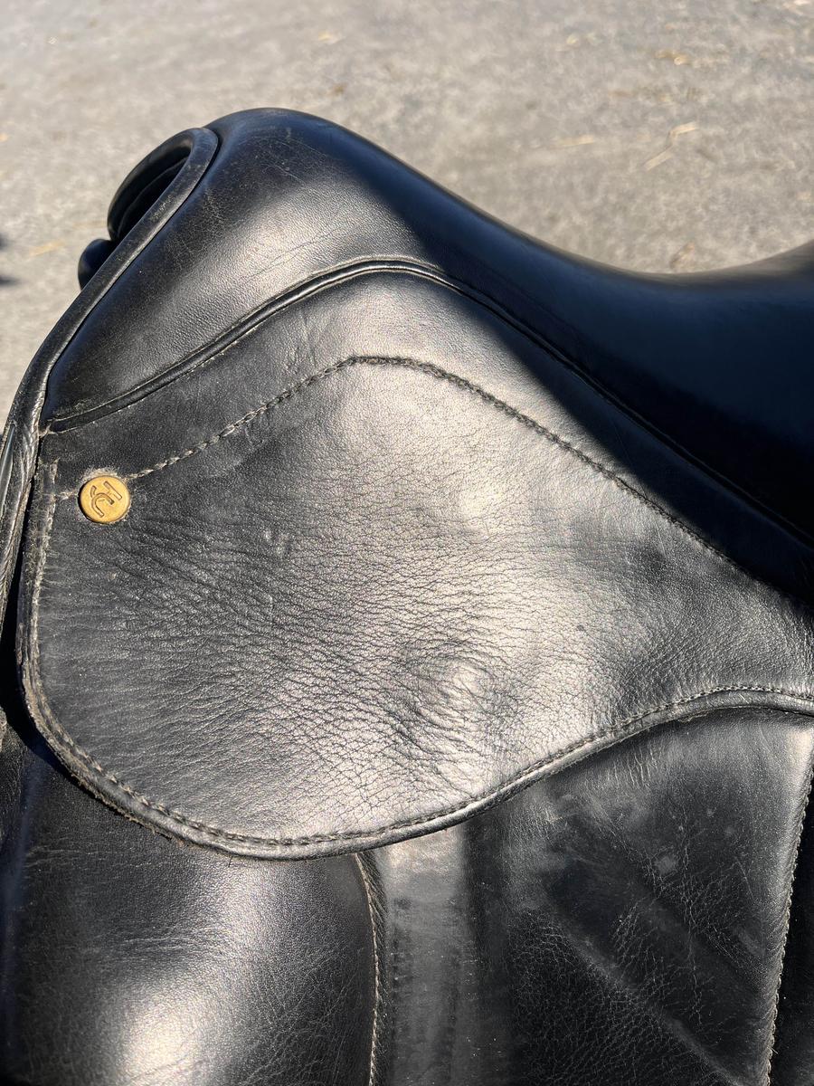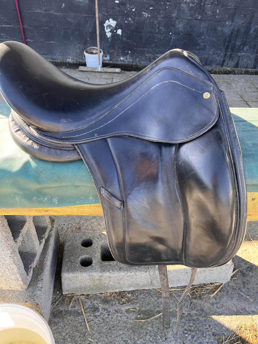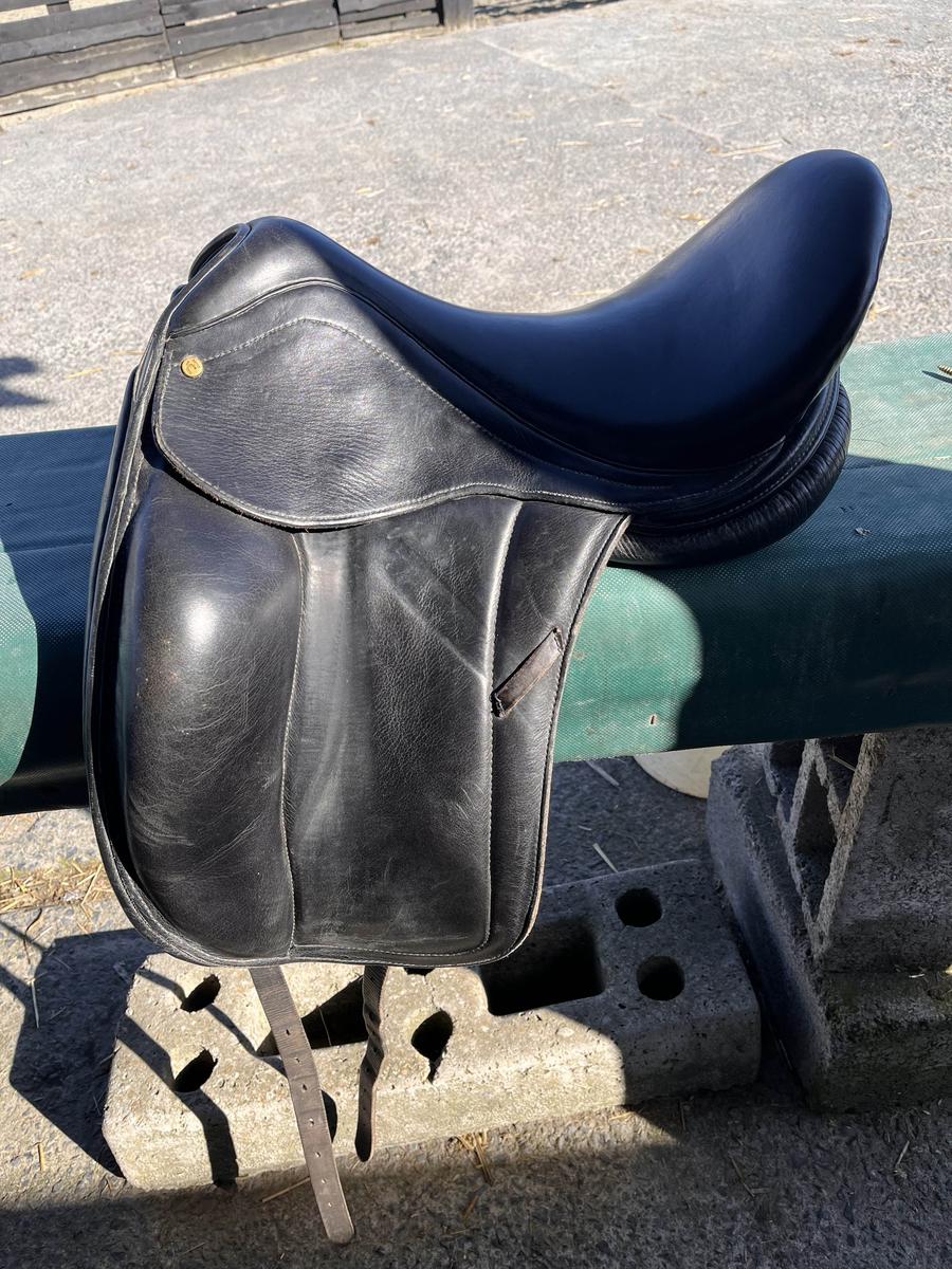 Je vends ma selle de dressage Jorge Canaves, taille 17.5 pouces, en très bon état.