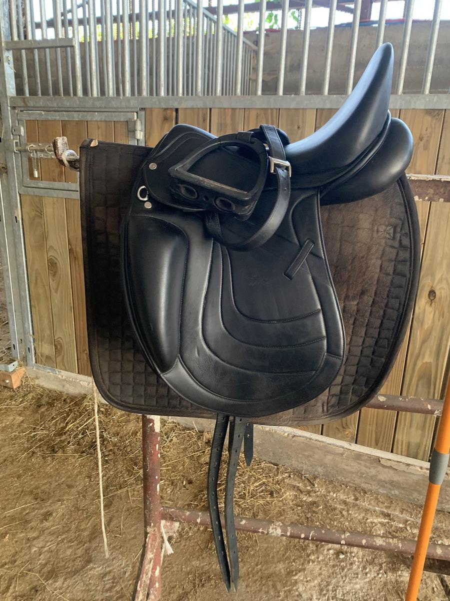 Je vends ma selle Eric Thomas fitter en parfait état. C’est une selle de couleur noire et de taille 17 pouces. La particularité est qu’elle s’adapte à la morphologie de votre cheval de part son arcade interchangeable. Elle vous procure une bonne sensation de monte de part ses monoquartiers.