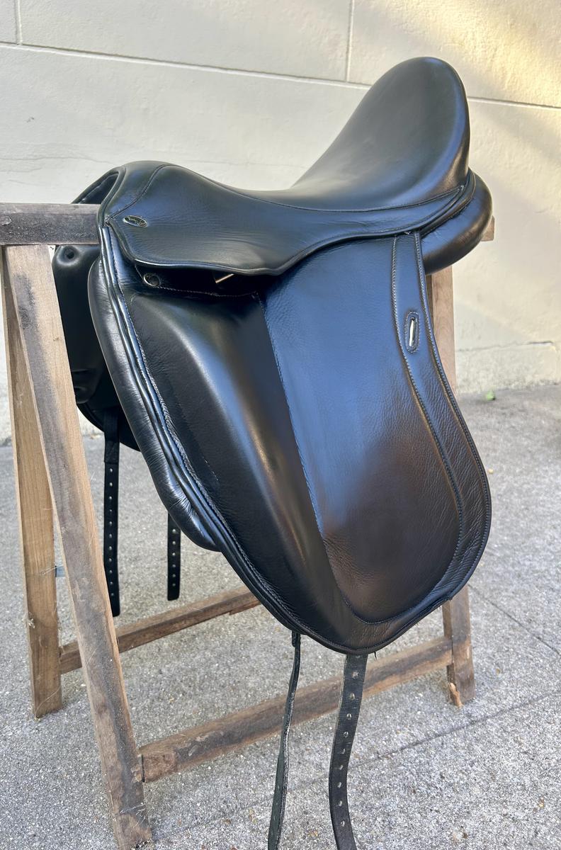 Selle de dressage Time Rider, cuir noir, monoquartiers.