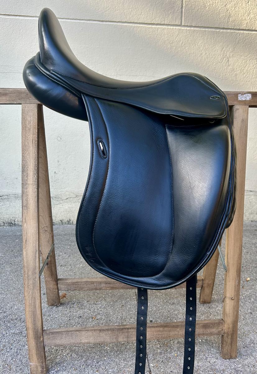 Selle confortable et encadrante, achetée d’occasion en 2023.