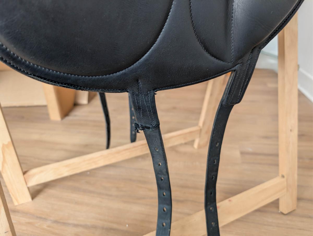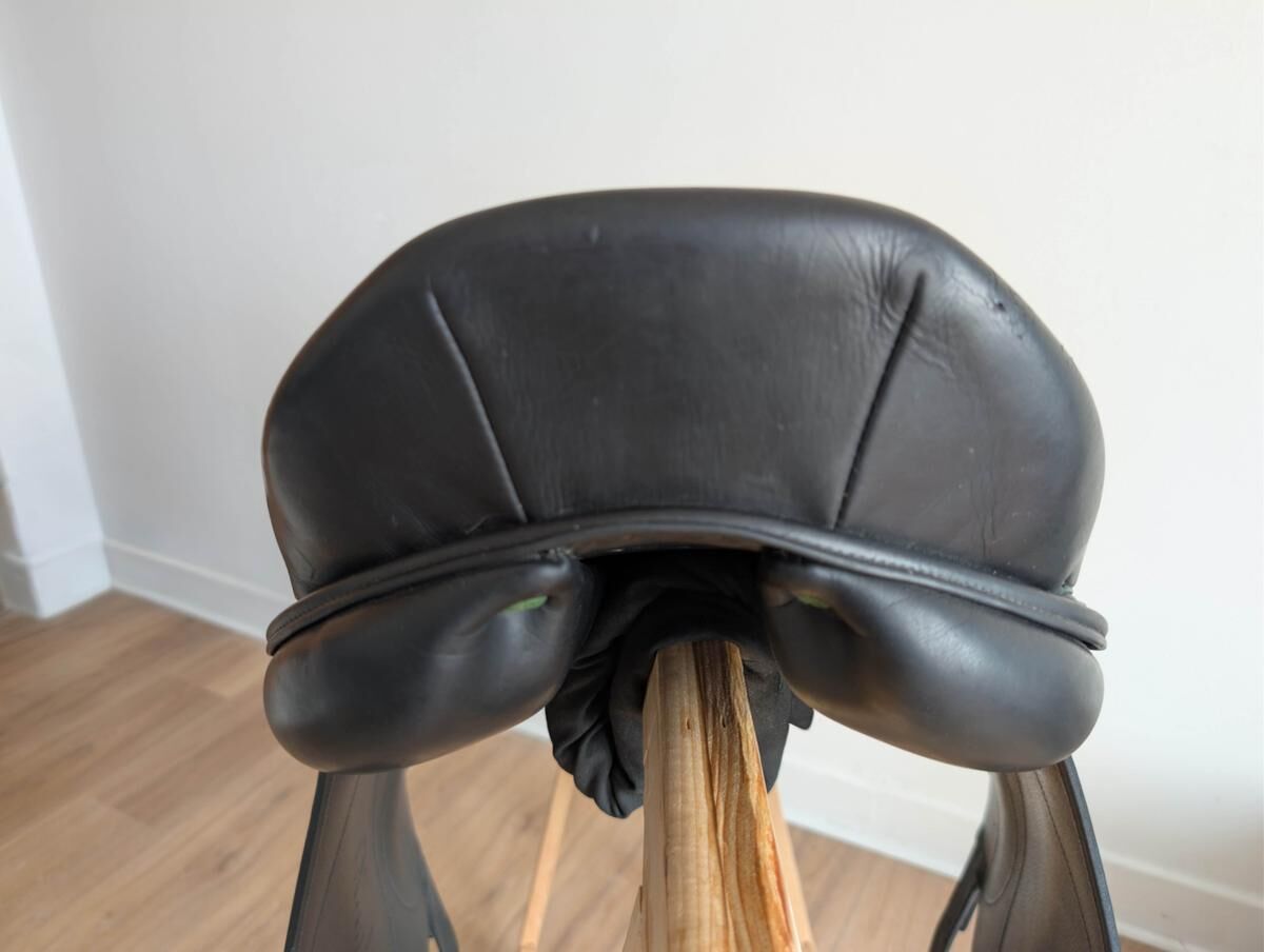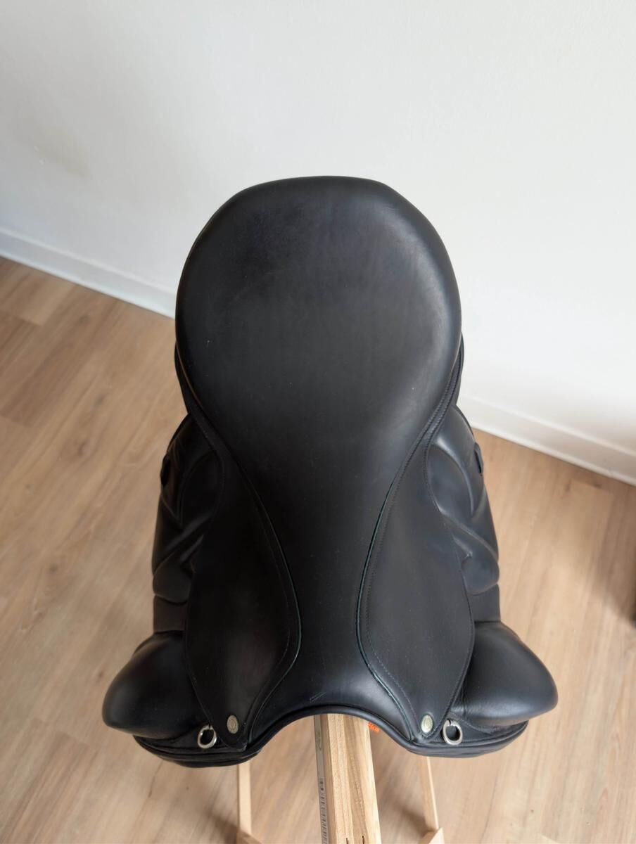 Superbe selle de dressage Makila de la marque Devoucoux Cette selle date de 2012 très bien conservée pour son âge C’est une taille 18 Devoucoux taillant légèrement petit plutôt comme un 17,5 , quartiers 3A parfait pour cavalier de plus d’un mètre 70. La selle posséde une arcade moyenne allant très bien à tout types de chevaux. celle-ci à été vérifiée par Devoucoux en fin 2023 et par mon vétérinaire ostéopathe en juin 2025. Attention comme présenté sur les photos la selle présente un petit défaut au niveau du bas de quartiers (peut être réparé par Devoucoux pour 150€). Je m’en sépare à contre cœur car c’est un véritable fauteuil mais je n’en ai à l’heure actuelle plus d’utilité étant cavalière majoritairement de CSO. La selle est légèrement négociable dans la mesure du raisonnable et vendue nue avec sa housse. Je reste biensur à votre disposition pour plus de questions😊
