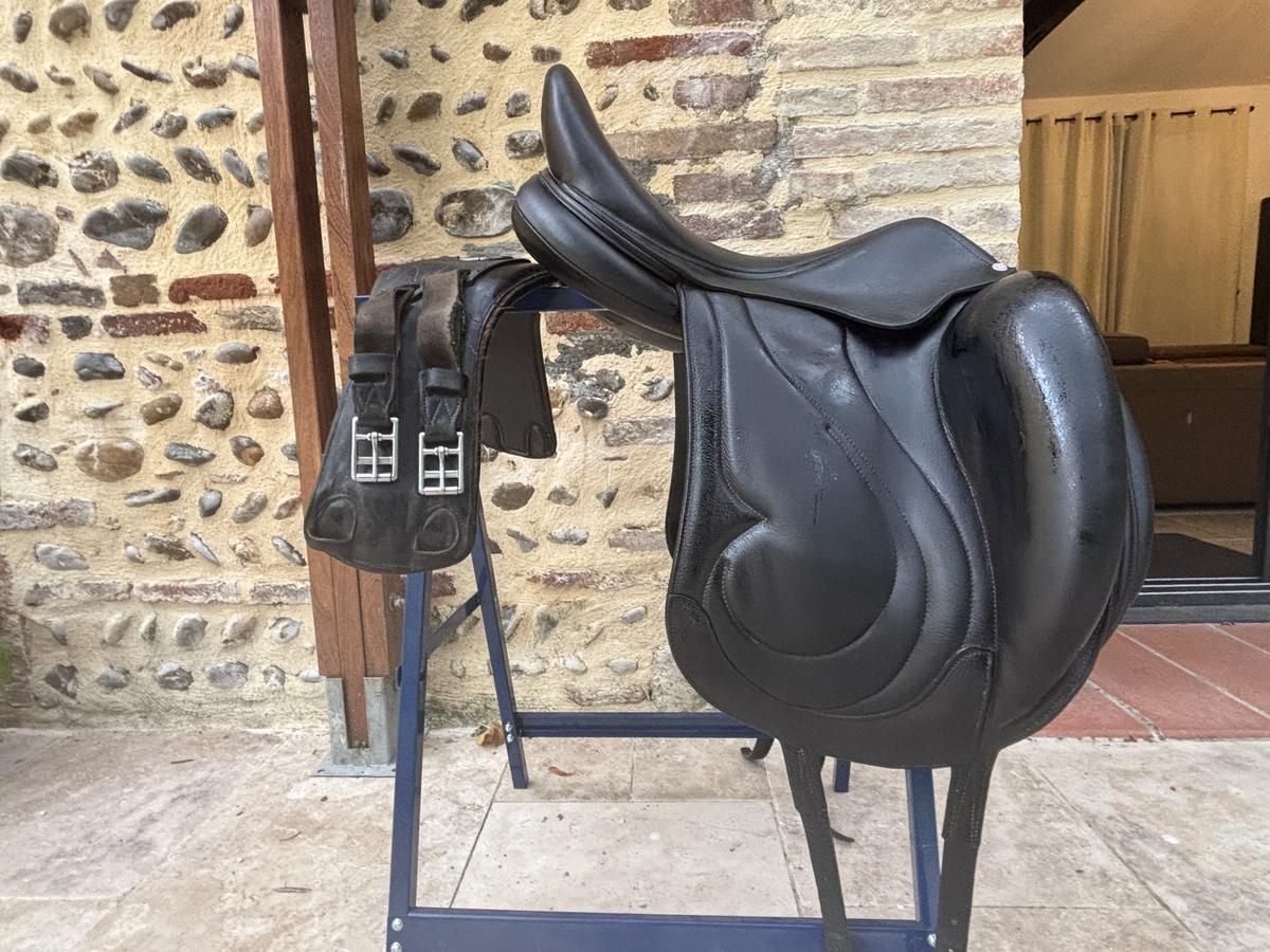 Taquets profonds de dressage procurant un maintien précis, une position optimale et une excellente descente de jambe. Il s’agit d’une vraie selle offrant une position technique et non pas une selle dressage/mixte