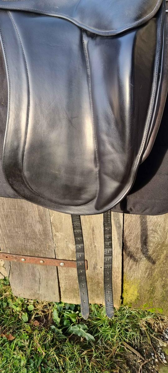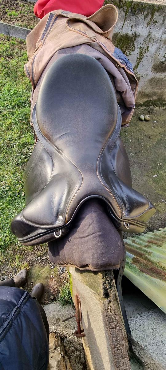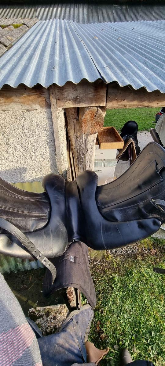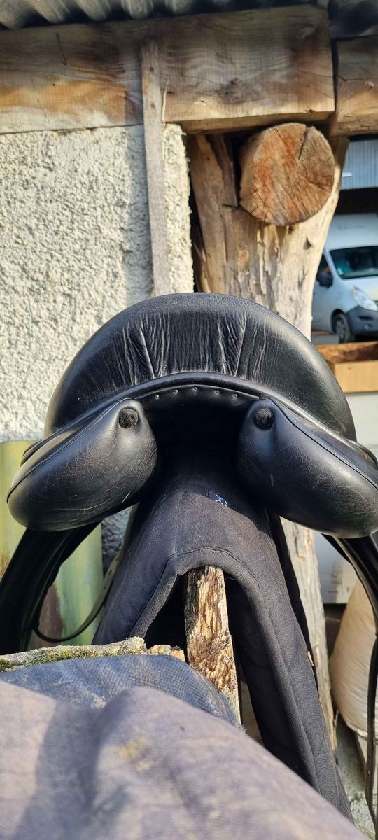 selle Childeric dressage 17.5 les quartiers ont été changé il y a 2 ans lorsque cwd m'a vendu cette selle d'occasion. Depuis j'ai fais quelques concours. la selle presente une trace d'usure au niveau du siège qui etait existente lors de mon achat . Ça n'a absolument pas bougé depuis . j'ai la facture de la vente il y a 2 ans et des photos de la selle le jour de mon achat. la Housse cwd sera livrée avec . annee 2008 très bon état général