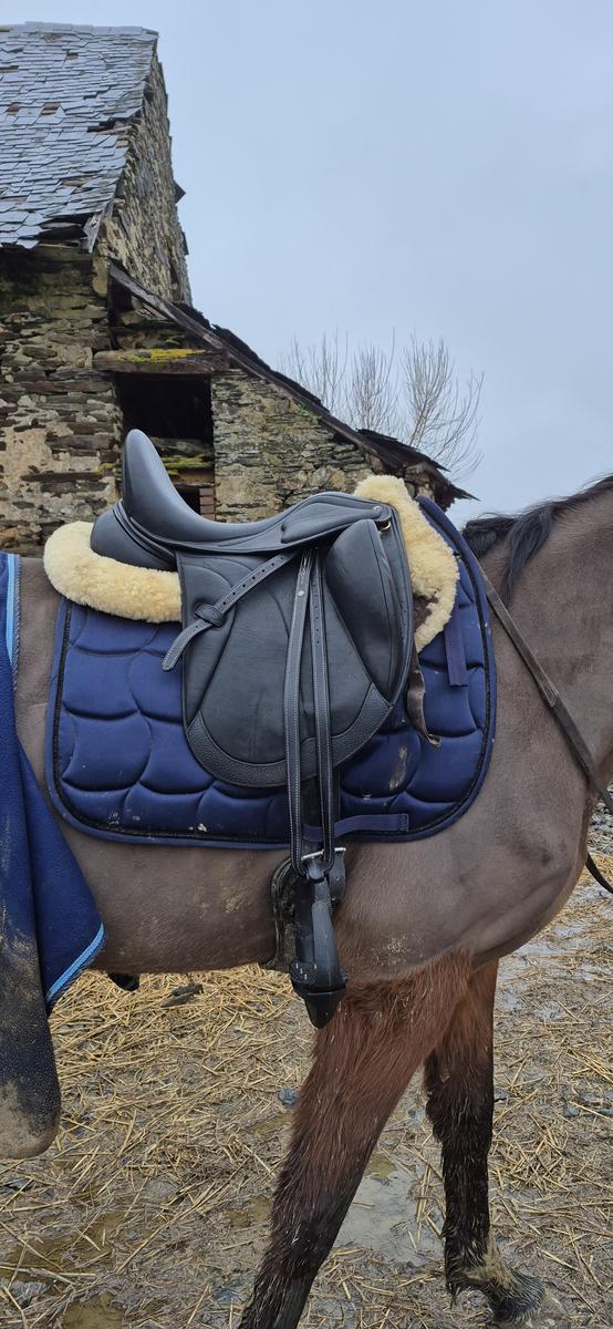 Vends selle de dressage ZALDI, taille 17 pouces, achetée début 2025, en excellent état -` Peu servie, toujours soigneusement entretenue.