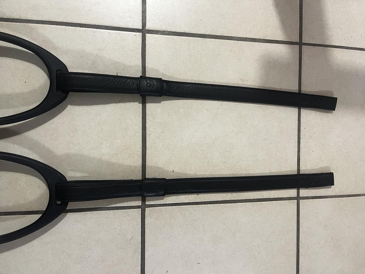 Vendue avec étrivières BATES, étriers compositi noir planché large, sangle 50 cm et housse de selle étanche.