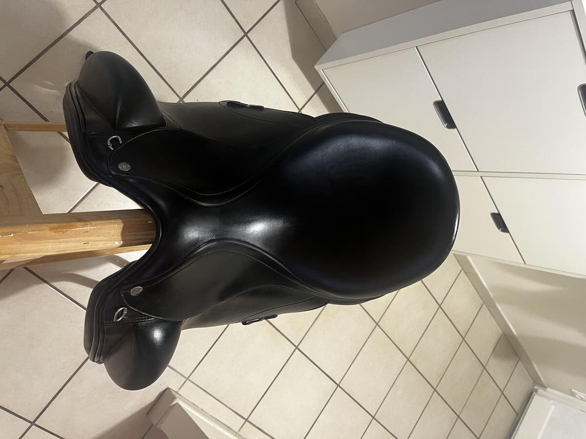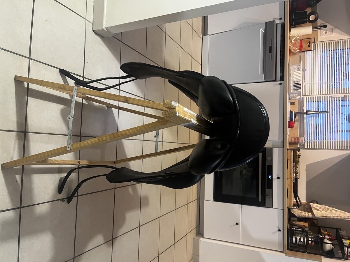 je vend ma selle de dressage marque équipe année 2016, taille 16.5 pouces, cuir noir